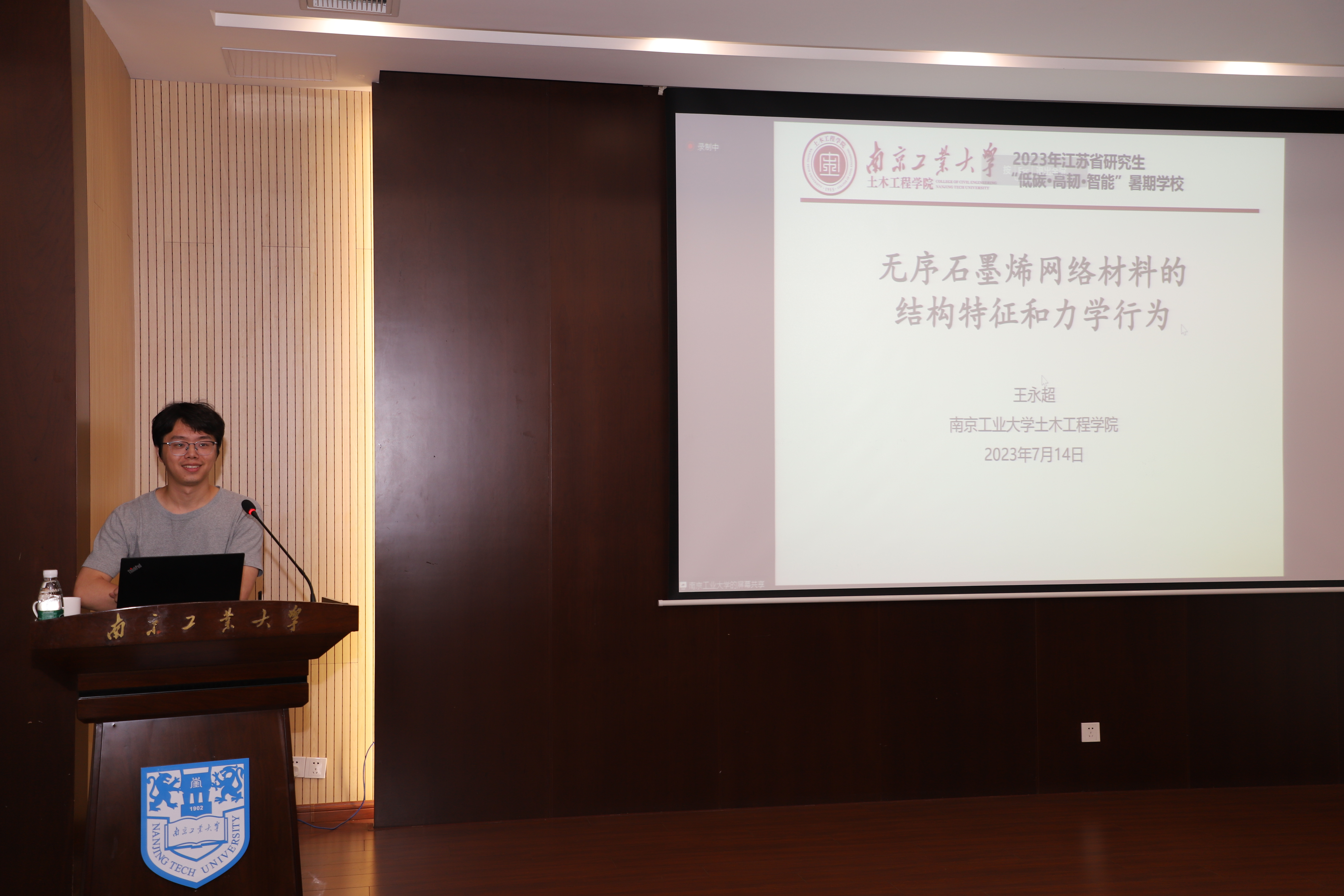 王永超老师做《无序石墨烯网络材料的结构特征和力学行为》报告