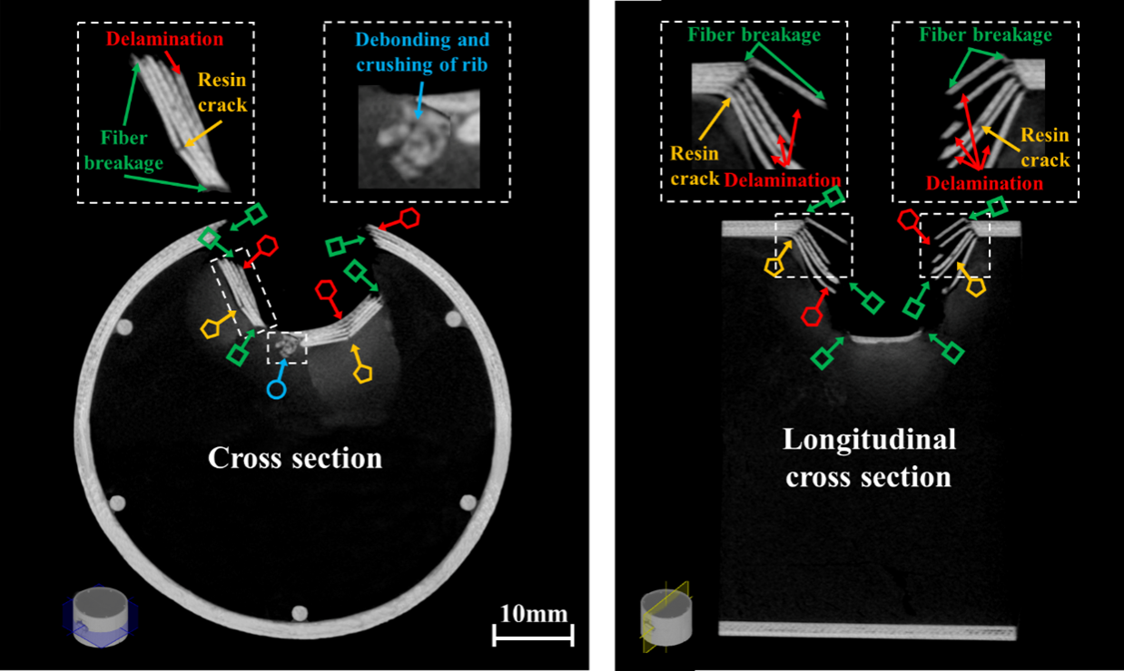 图2 复合材料管冲击后内部损伤的Micro-CT表征