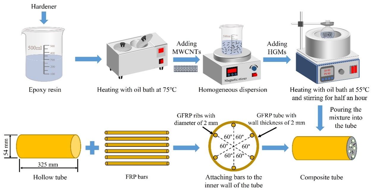图1 MWCNT增韧微珠泡沫填充GFRP管制作过程