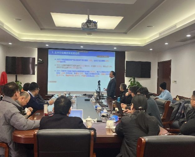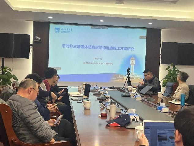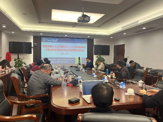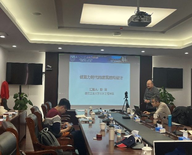 董军教授介绍了双碳战略背景下不锈钢复合钢板结构发展前景研究,张大长教授就220kV新型户内变电站-屋顶构架结构进行了介绍、杨会峰副经理介绍木结构自攻螺杆连接节点的抗震性能研究、孙广俊教授对非对称三塔连体超高层结构连廊施工方案研究进行了汇报、程小武教授对多高层木一混凝土组合结构建造关键技术研究与应用进行了讲解、岳孔老师对装配式建筑围护结构隔声性能提升技术进行了探讨、霍瑞丽老师对FRP增强生物基复合材料结构力学性能进行了汇报、孙小鸾老师对江苏省康复医院木-混凝土混合结构进行了介绍、彭洋老师对介绍了低算力时代的建筑结构设计、徐金俊老师就数智赋能土木工程材料与结构的新纪元得主题进行了案例分析、赖韬老师介绍了基于深度学习的冲击荷载作用位置识别方法。系里其他年轻教师也都就自己所在领域进行了精彩的汇报。