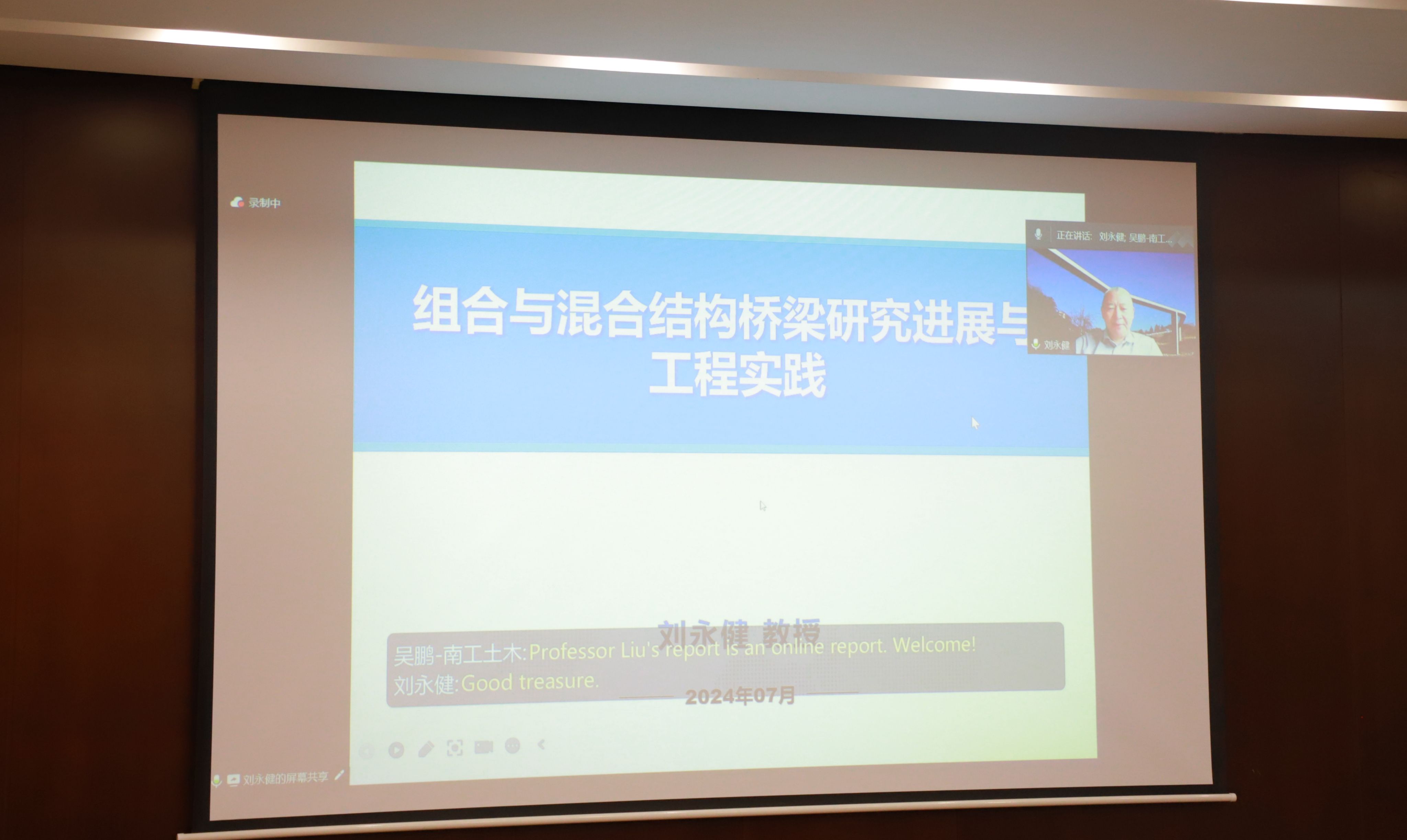 刘永健教授带来了一场题为《组合与混合结构桥梁研究进展与工程实践》的精彩线上报告。他的报告聚焦于组合与混合结构桥梁这一前沿领域,系统性地介绍了该领域的研究动态、最新进展以及在实际工程中的应用实践。刘教授凭借其丰富的科研经验和深厚的理论功底,详细阐述了组合与混合结构桥梁的设计原理、施工技术以及在使用过程中面临的挑战和解决方案。此外,他还分享了多个国内典型的工程案例,通过对比分析,展示了这种结构桥梁在提高承载能力、抗震性能以及降低成本等方面的优势。刘教授的报告不仅为在场的学者和工程师提供了关于组合与混合结构桥梁的宝贵知识,也为桥梁工程领域的技术创新和发展趋势提供了新的思考方向。刘永健教授的报告内容丰富,讲述生动,拓宽了学员们的知识面,激发了学员的研究兴趣。学员们展现出极高的参与热情,提问环节持续不断,互动讨论的氛围十分活跃。
