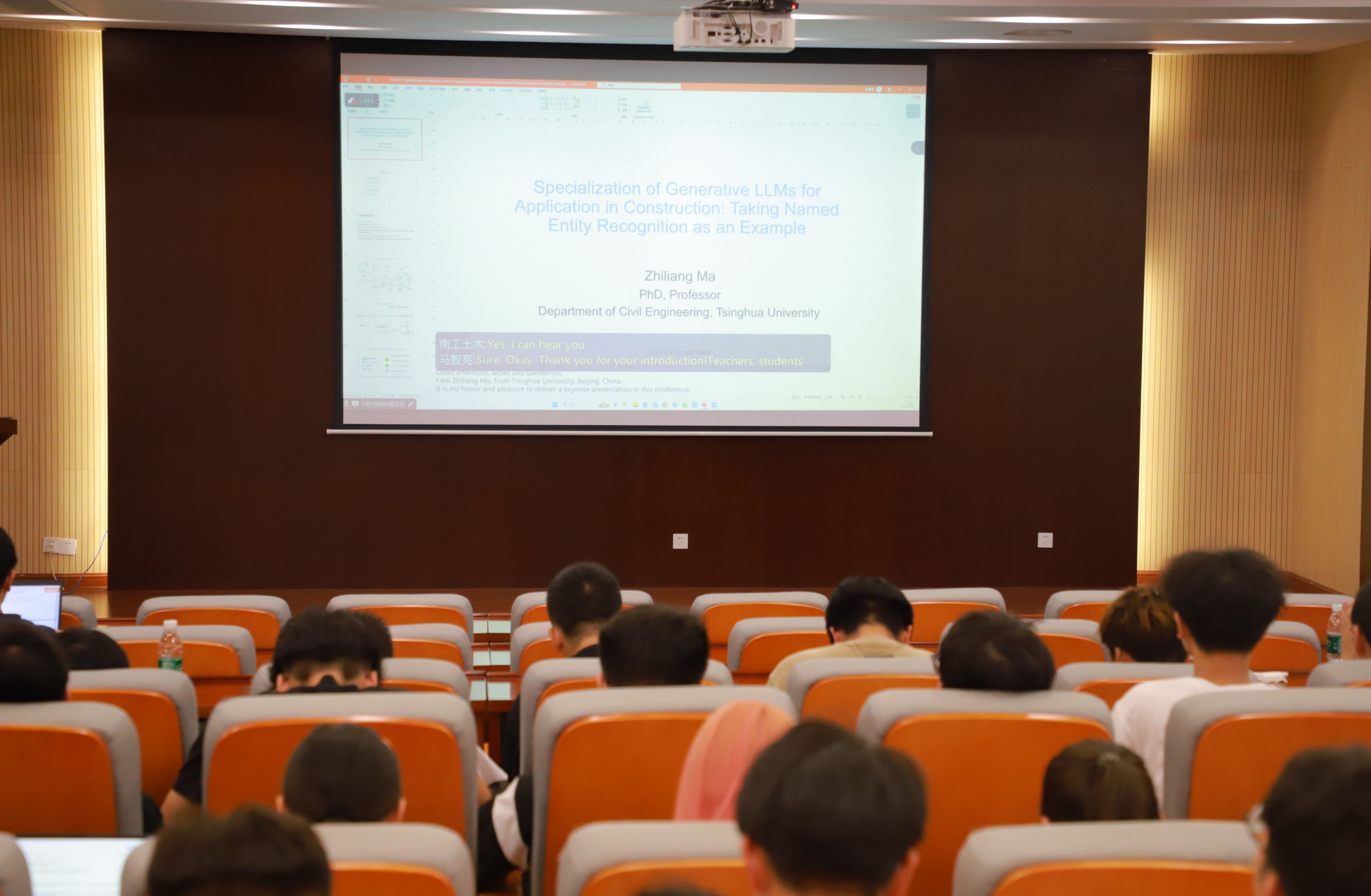 马智亮教授以《Specialization of generative LLMs for application in construction: taking named entity recognition as example》为题,深入探讨了生成式大语言模型(LLMs)在建筑领域的应用,特别是其在NER方面的研究成果。报告首先介绍了生成式大语言模型的基本概念和技术背景,强调了这些模型在自然语言处理中的广泛应用潜力;随后,具体分析了如何将这些模型技术应用到建筑行业中,尤其是在信息提取和管理方面,特别关注NER技术,通过实例分析和数据实验展示了采用Fine Tuning方法在处理建筑领域专业术语和复杂语境方面的优势,并提出了优化模型的方法和策略,以提高识别准确性和效率。此外,还探讨了未来研究的方向,建议进一步结合领域知识与数据驱动的方法,推动生成式LLMs在建筑行业的全面应用,为建筑行业的信息化和智能化发展提供了新思路和新路径。老师和学员们针对知识图谱分析、建筑图表分析、大语言模型的应用范围与马教授展开了深入的讨论。