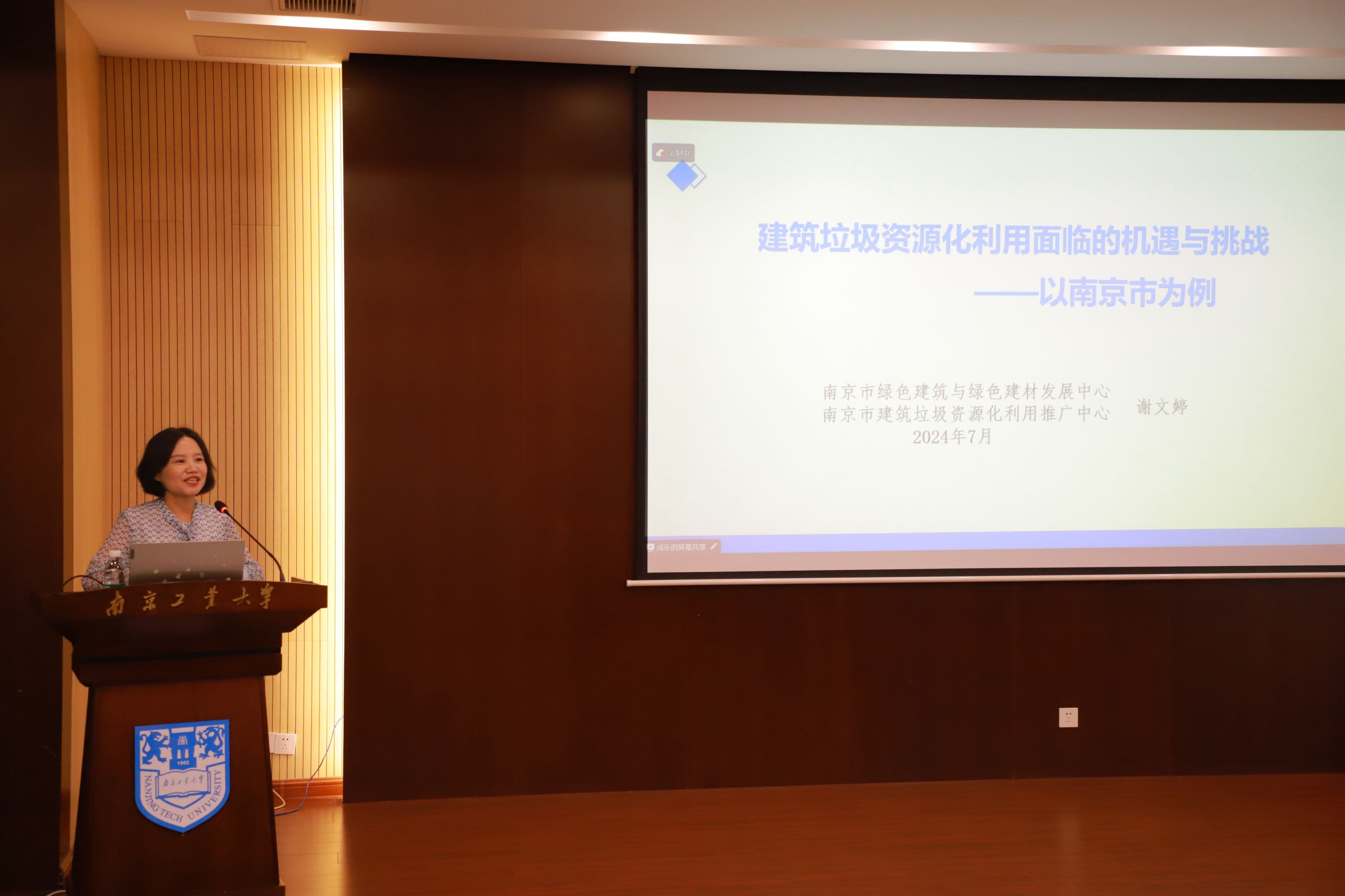 谢文婷副主任以《建筑垃圾资源化利用面临的机遇与挑战——以南京市为例》为题,针对建筑垃圾的资源化利用为学员们带来了一场精彩的报告。报告结合日常生活中的实际案例给学员们详细介绍了建筑垃圾的定义与内涵,通过近年来国内发生的多起典型案例阐述了建筑垃圾无序处理的危害。从政策层面、经济效益等方面,并辅以北京环球影城建设为例,说明了建筑垃圾资源化利用大有可为,并对当下的生产工艺及国内外先进经验进行了详细介绍。最后,谢主任针对南京市当前在建筑垃圾资源化利用方面的建设和未来发展提出了诸多建议。谢主任的报告从宏观视角让学员们看到了当下土木工程在可再生领域的发展,拓宽了学员们的视野。