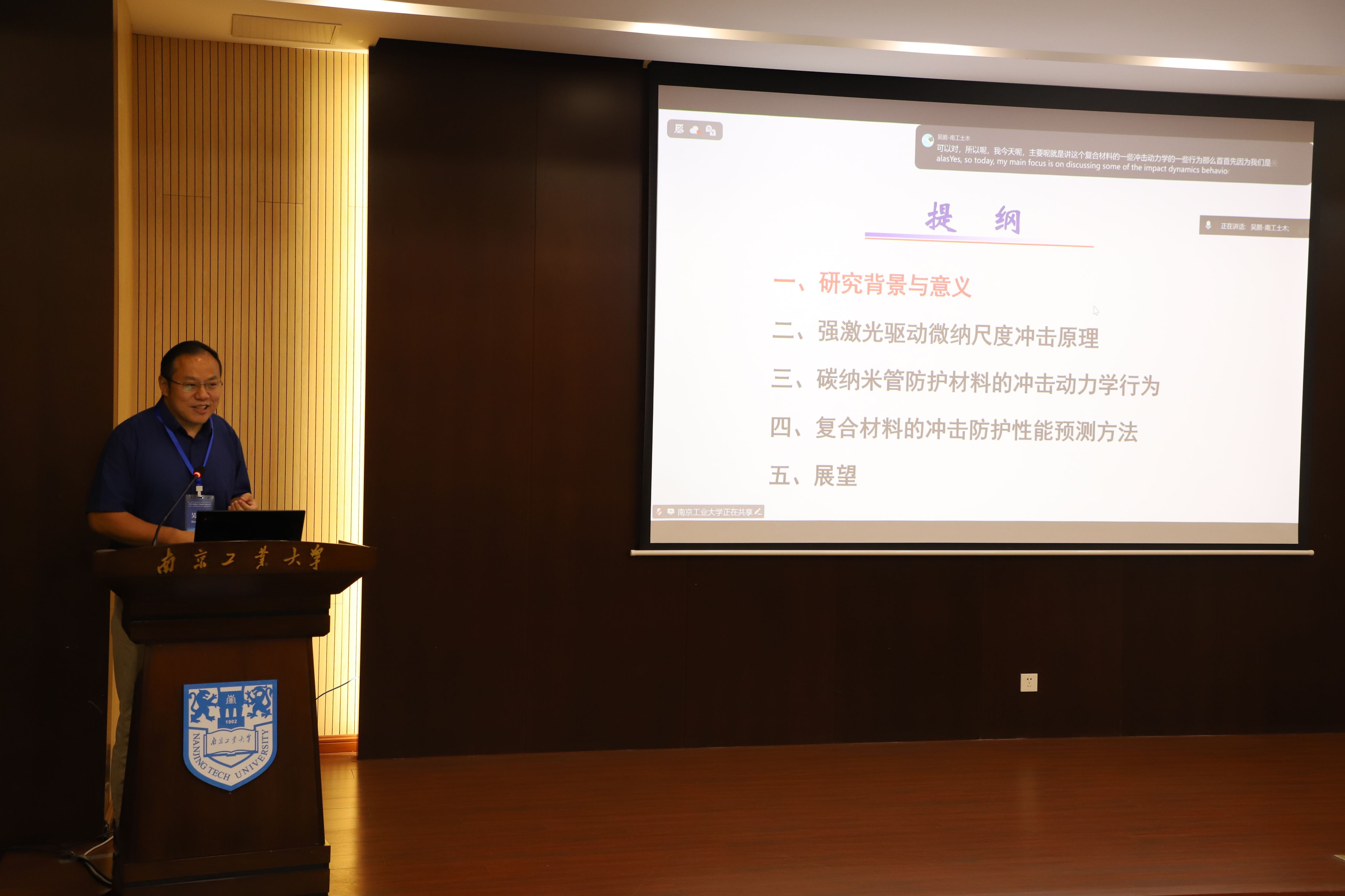 下午,中国科公司力学研究所吴先前研究员在本次学术交流会上,带来了一场题为《纤维增强复合材料的多尺度冲击动力学行为研究》的精彩汇报。吴先前研究员阐述了汇报了关于薄膜材料的实验进展:采用约200纳米厚的薄膜进行实验,辐照后材料的单位质量能量吸收能力显著提升,防护性能提高一倍以上。最高比性能达到28兆焦/公斤,远超传统金属材料(0.1-0.5兆焦/公斤),是目前薄膜材料中报道的最高防护能力。辐照后,碳管层间相互作用增强形成交联结构,每一层均能承载,提升能量吸收。吴先前研究员在未来希望能够聚焦单丝/薄膜的基础性能提升。探索通过计算快速预测复合材料性能的方法,减少参数调整耗时。
