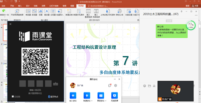 受本轮疫情影响,公司组织开展线上教学,为最大限度地确保在线教学质量,太阳集团tyc33455官网教师李鸿晶、孙广俊将雨课堂与腾讯会议融合运用,开展本科生课程“工程结构抗震设计原理”线上直播教学。