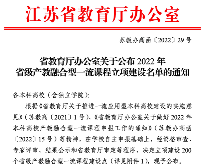 “产教融合型一流课程建设计划”是我省推进一流应用型本科高校建设“六大计划”之一,旨在引导行业企业与公司合作共建一流课程,推动江苏产业创新发展的新技术、新知识进课堂、进课程、进教材、进实验室、进创新创业项目。“十四五”期间,在应用型本科高校中遴选建设200门左右省级产教融合型一流课程。