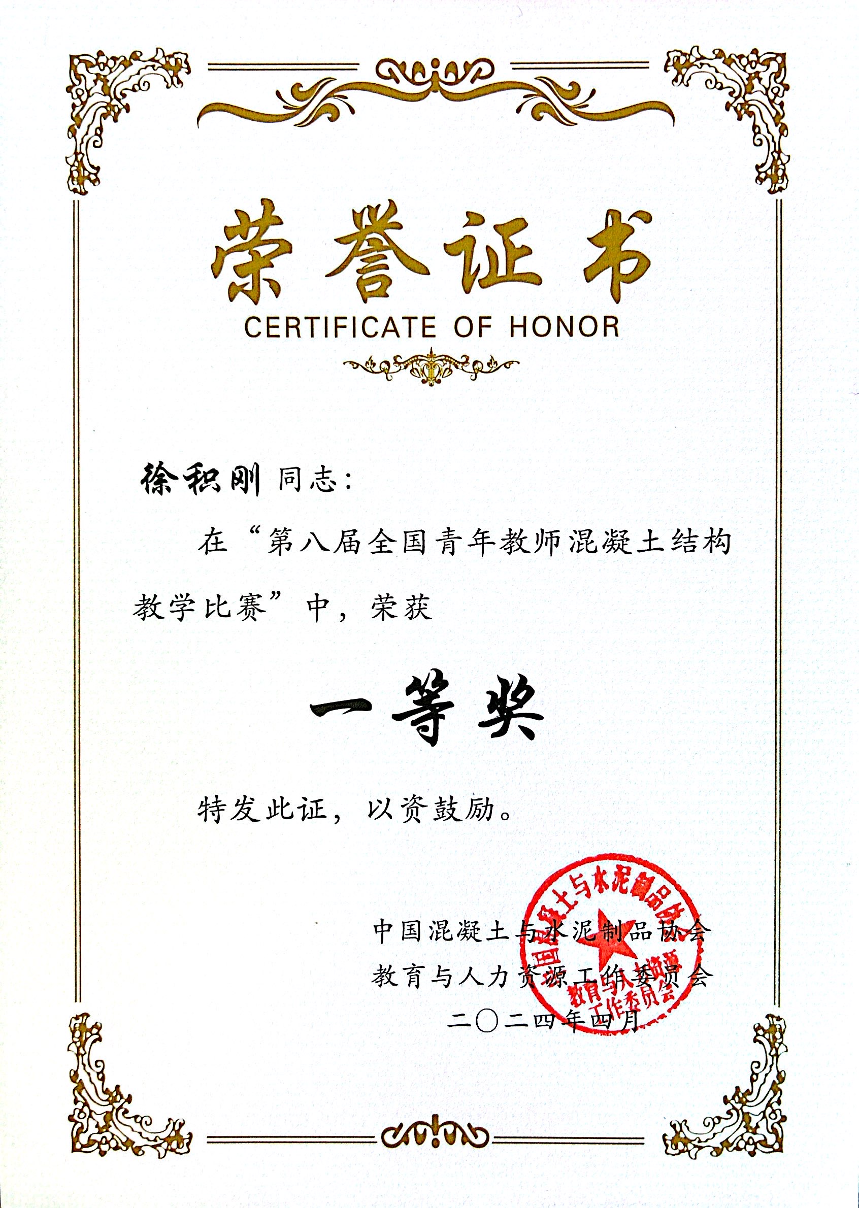 419日至421日,由中国土木工程学会教育工作委员会、教育部高等公司土木工程专业教指委、中国混凝土与水泥制品协会教育与人力资源工作委员会联合主办的第八届全国青年教师混凝土结构教学比赛在合肥工业大学举行。太阳集团tyc33455官网青年教师徐积刚参加了此次比赛并荣获一等奖(最高等次),实现了公司教师在该项比赛上的成绩突破,充分展现了公司青年教师扎实的教学基本功和优异的教学能力。