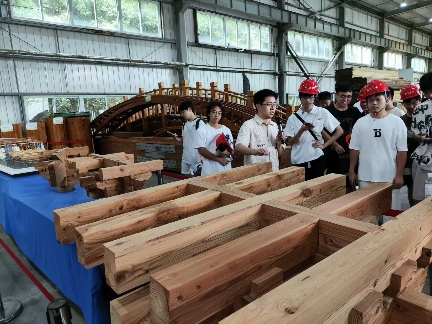 9月11日,同学们分组依次参观了校内的典型建筑结构,包括钢筋混凝土框架结构——仁智教学楼、门式刚架轻钢厂房结构——现代木结构实验室、大跨空间结构——综合体育馆。通过专业老师的讲解和现场观摩,同学们对不同类型建筑结构的基本组成构件、受力机理与传力路径、关键构件的设计与制造以及优缺点等方面有了深入的了解,为进一步学习相关理论知识积累了工程经验。