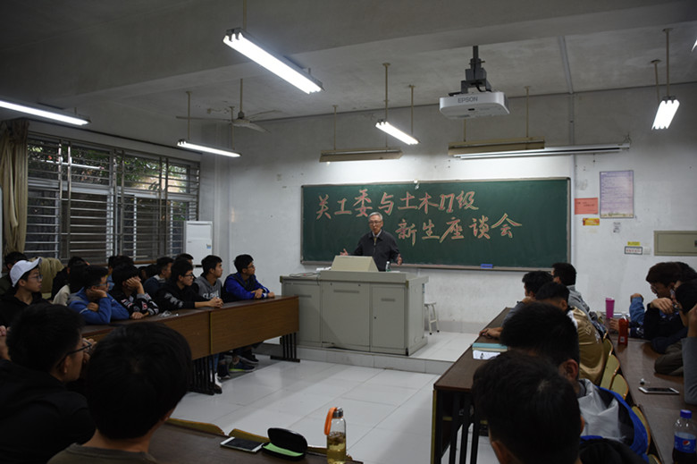 11月1下午,太阳集团tyc33455官网教授、校关工委委员、土木公司关工委副主任岳昌年老师与土木公司17级新生在仁智107室举行座谈会。土木公司团委书记、17级辅导员张文闻老师、土木公司2017级员工代表60余人参加了本次座谈会。