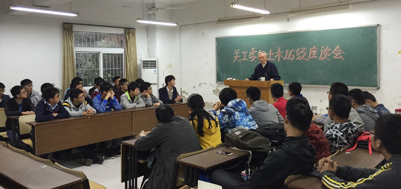 11月9日下午,关工委岳昌年教授与土木公司2016级新生座谈会在仁智109教室举行。土木公司党委副书记熊中宏、院团委书记张琳,土木公司2016级员工代表共约60人参加了座谈。