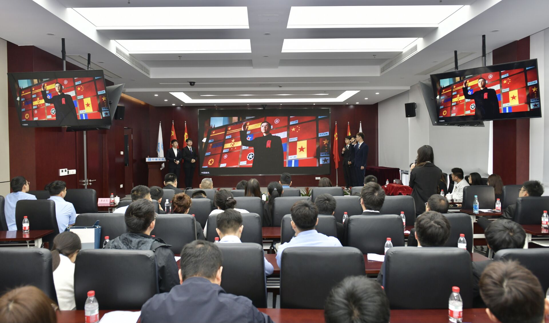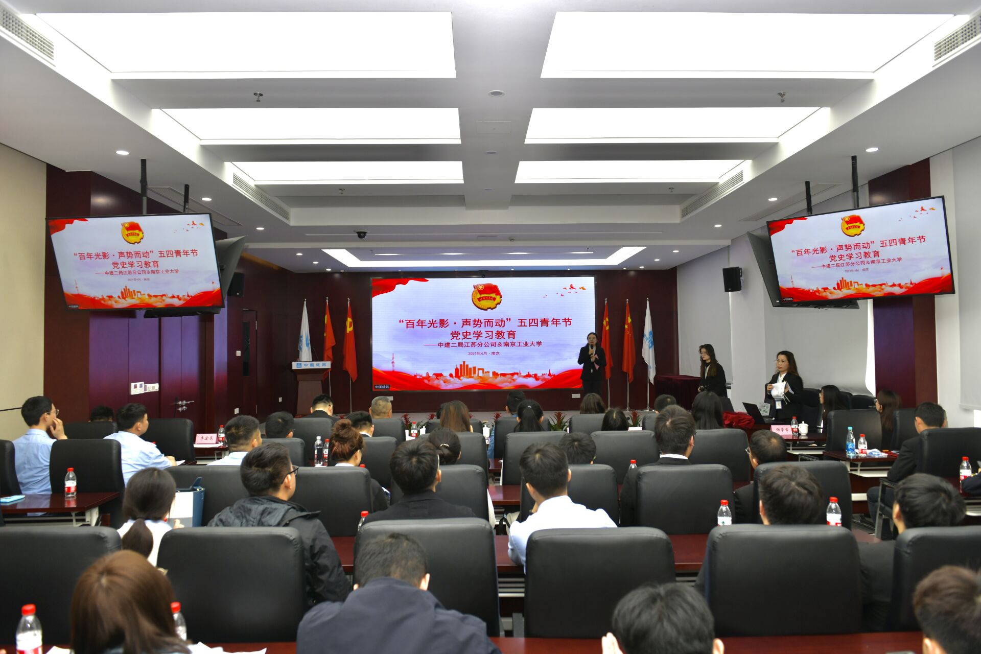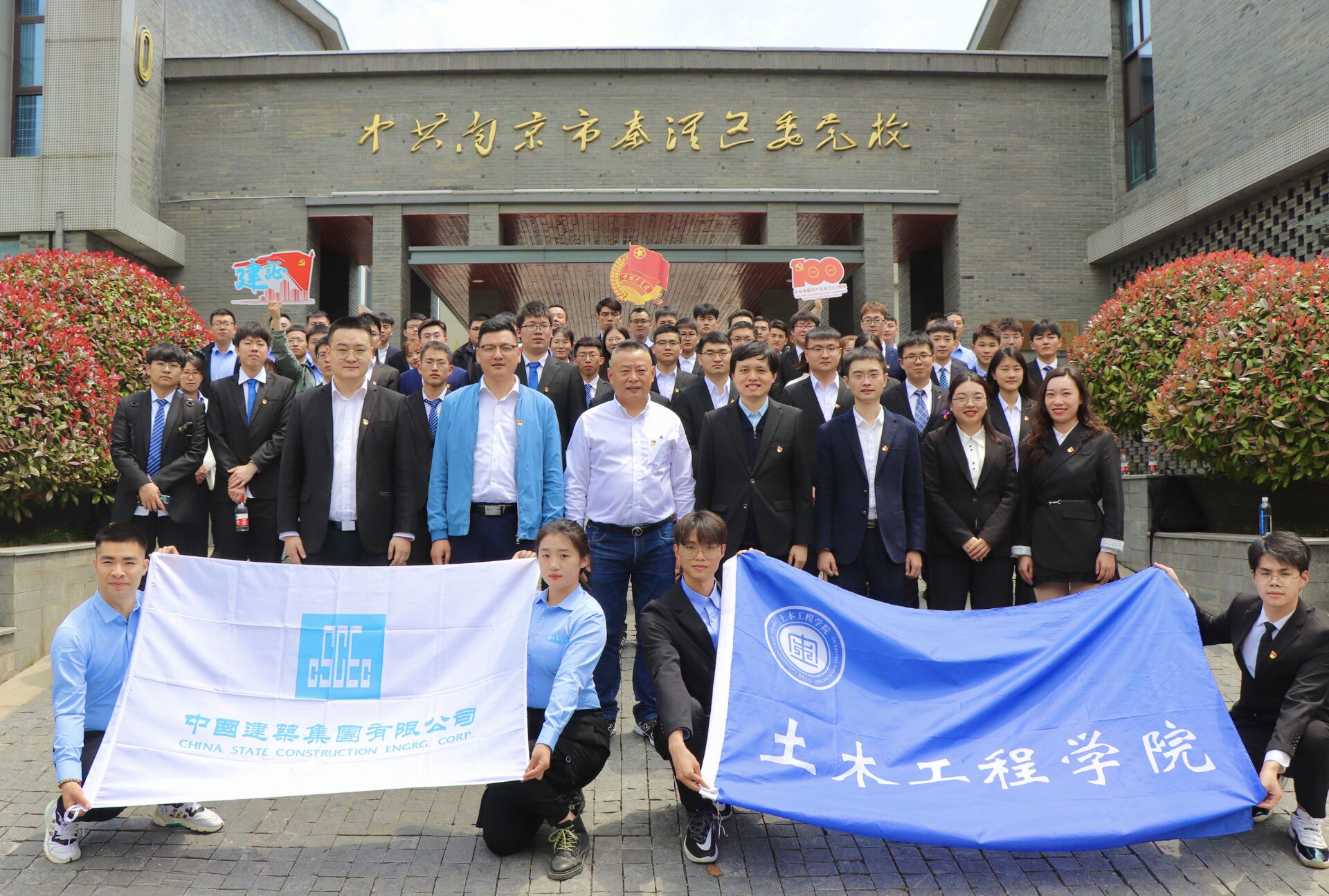 中建二局江苏分公司党委副书记、纪委书记、工会主席王鹏,中建二局华东公司人力资源部副经理董彦成,公司党委副书记路遥、院团委副书记葛芷萱等及中建二局江苏分公司职工代表、太阳集团tyc33455官网本科生、研究生党员代表参加活动。