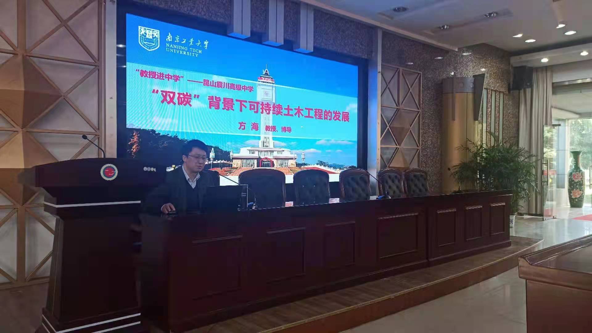 随后,还进行了“教授进中学”专场报告会。方海教授以《“双碳”背景下可持续土木工程的发展》为题,深入浅出地介绍了土木工程相关领域的最新进展,引起百余名高三学子的浓厚兴趣。