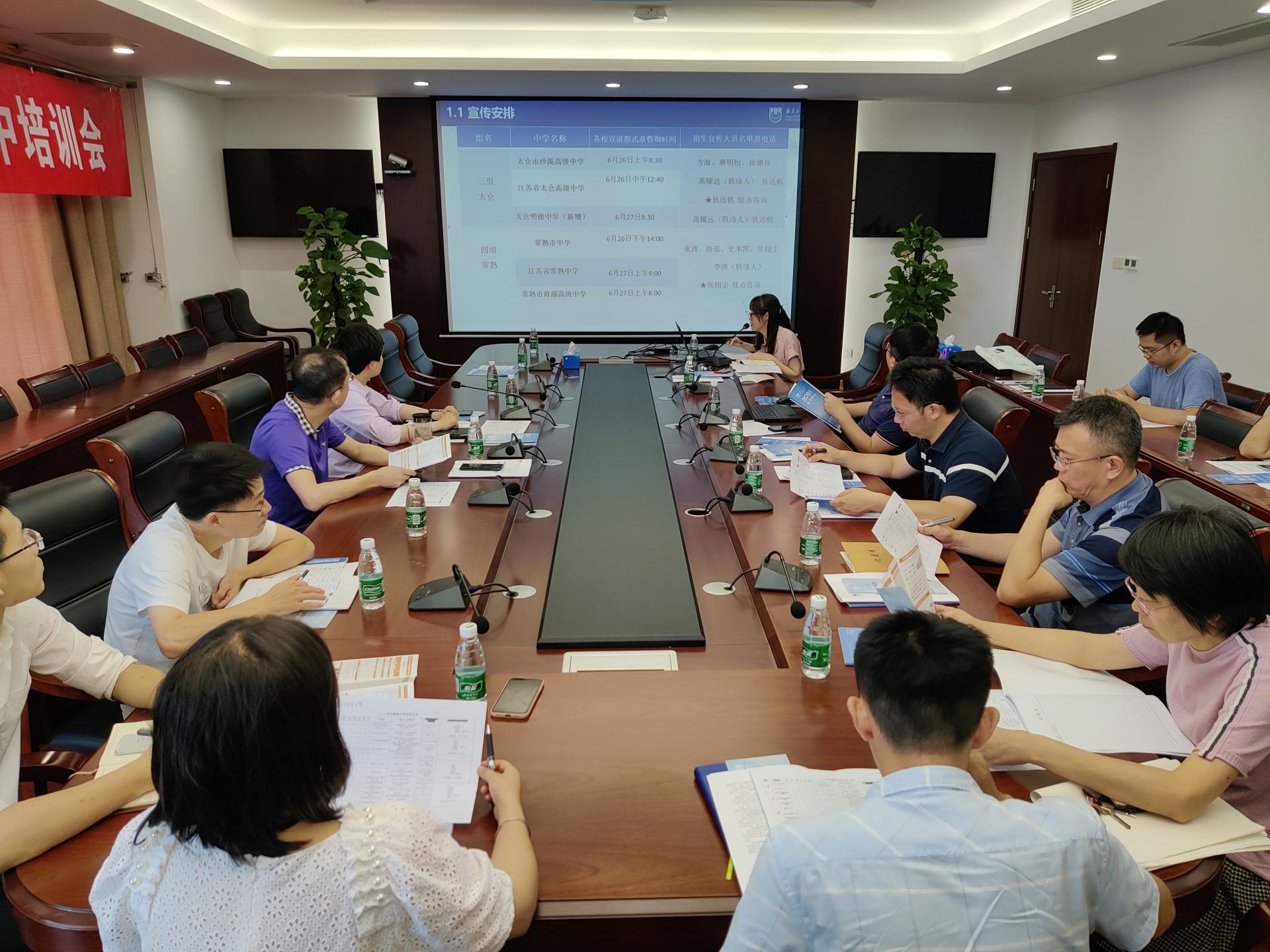 为进一步明确招生宣传要求、提升招生宣传实效,6月23日上午,太阳集团tyc33455官网在立德楼101会议室召开2021年招生宣传集中培训会。经理王曙光、副经理方海及参加外出招生宣传的老师参加会议。会议由公司党委副书记路遥主持。