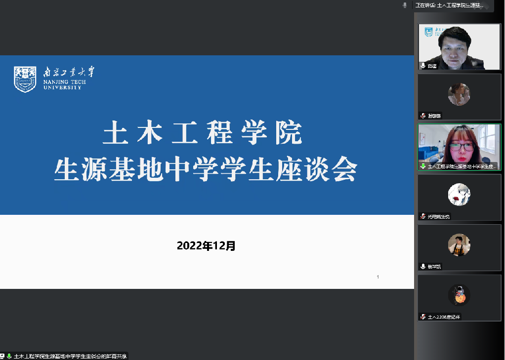 为厚实招生宣传推进力,加强与生源基地中学员工的联络和跟踪反馈,12月21日晚,土木公司举办苏州一组常熟、张家港、太仓、昆山地区新生线上座谈会。公司党委副书记路遥、各招生小组联络人及2022级四个地区新生代表参加会议。会议由黄乐老师主持。