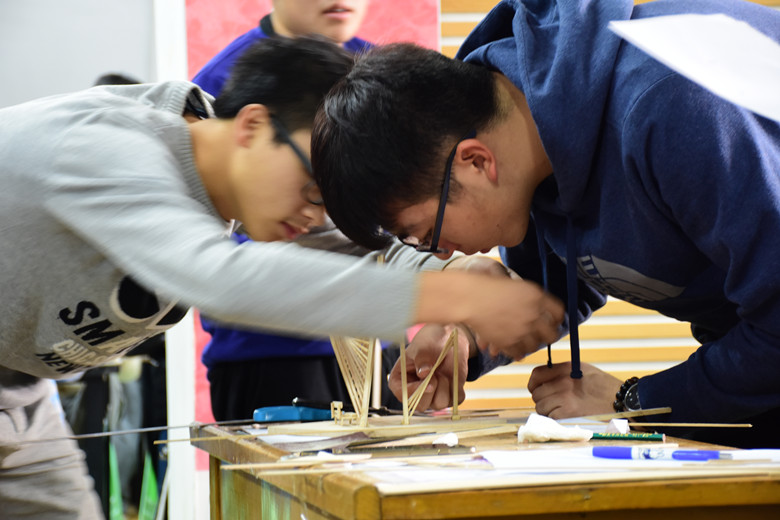 11月28日上午9:00,模型制作环节准时开始,38组参赛选手开始紧张而有序地制作自己的作品。不少参赛选手在制作空余之时,观摩其他同学的制作过程,互相沟通和交流。12:00整,模型制作结束。