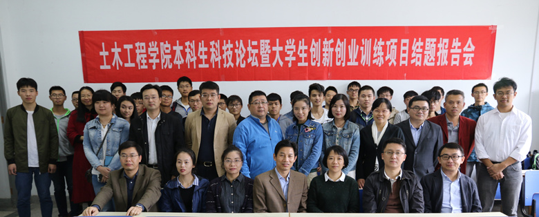 本届本科生科技论坛暨老员工创新项目结题报告会共有13项省大创中期检查项目、30项校大创结题项目参加答辩。各项目组通过PPT解说、样品展示等形式,从项目的开题到中期进程、初步研究成果、后期实施计划、预期研究成果、存在问题、经费预算等方面进行了全面细致的陈述。评审老师们对各组成员取得的成绩给予了充分肯定,同时也给同学们提出了许多宝贵建议:建议同学们要以大土木的视野对待专业,紧贴实时热点做研究,研究成果要形成论文,力争向核心期刊发表;要进一步提高大创作品的规范度和严谨度,避免出现以偏概全、以点带面的现象。评委老师们还嘱咐同学们做研究要有持之以恒的态度,只有不断修炼才能有收获。