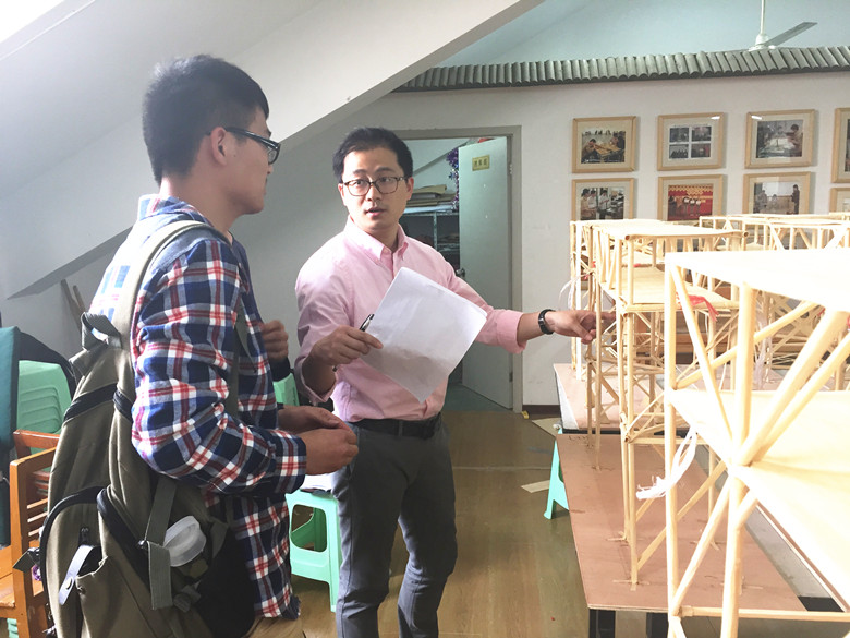 万里老师作为评委代表对参赛作品进行点评,并提出建议,各参赛作品应充分利用材料特性,在做工上不断精细,再加之合理的节点设计。万老师鼓励同学们以参加创新竞赛为基础,在今后的相关课程中进行更全面的学习。