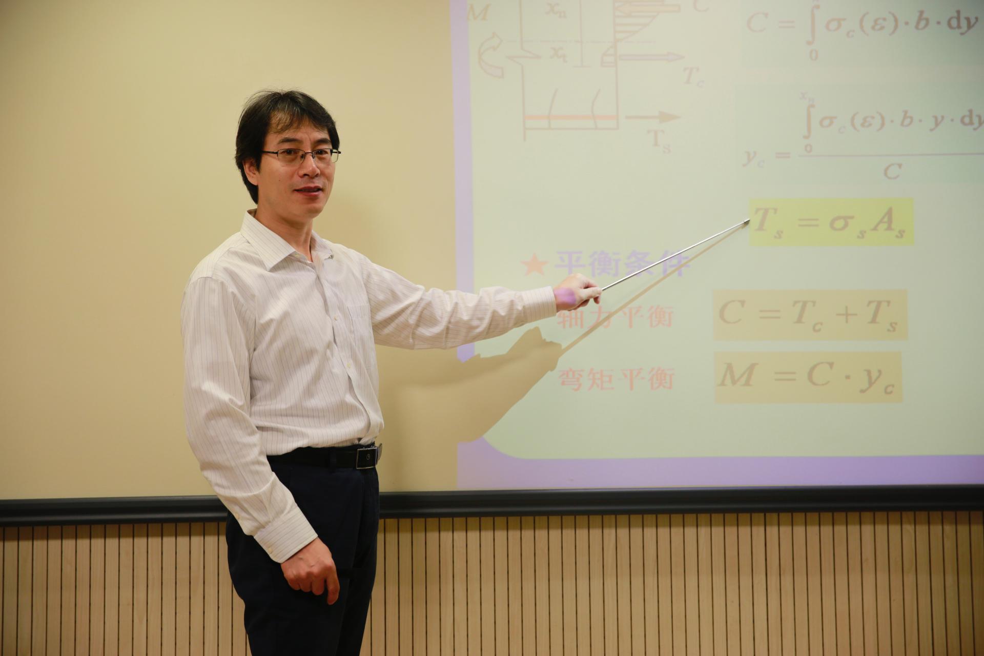 2000年,东南大学结构工程方向博士毕业的王滋军入职公司,多年来一直承担着《混凝土结构设计原理》和《混凝土结构与砌体结构设计》两门专业核心课程的教学工作,同时,还承担着《毕业设计》《高层建筑结构设计》《预应力混凝土结构设计》等教学任务。面对年均高达700多标时的繁重教学任务,王老师认真钻研教学艺术,力求生动、形象的授课方式,充分调动员工积极性,提升教学效果。“王老师总是采用传统的板书将课堂内容的重点、难点清晰地写在黑板上,以便我们加深理解,同时,又运用能提高传递教学信息速度和效率的现代多媒体教学手段,丰富我们的知识面,拓展知识的深度。”已与中建八局签约的崔正宇同学介绍道,“有次讲混凝土结构时同学们有点‘懵’,王老师当即用手机、粉笔和书本模拟了一个混凝土柱结构……”“传统板书与现代多媒体恰似课堂教学的车之两轮,两相结合方能驱动车辆滚滚向前。”王老师形象地解释道。他认为,多媒体能突破时间、空间的限制,将生活现象、模型结构形象生动地再现课堂,板书则可静态沉淀出厚重的、抽象的知识,两者有机结合才能提升课堂效率。