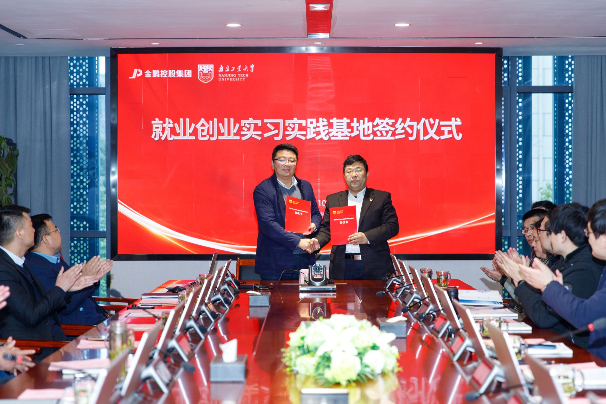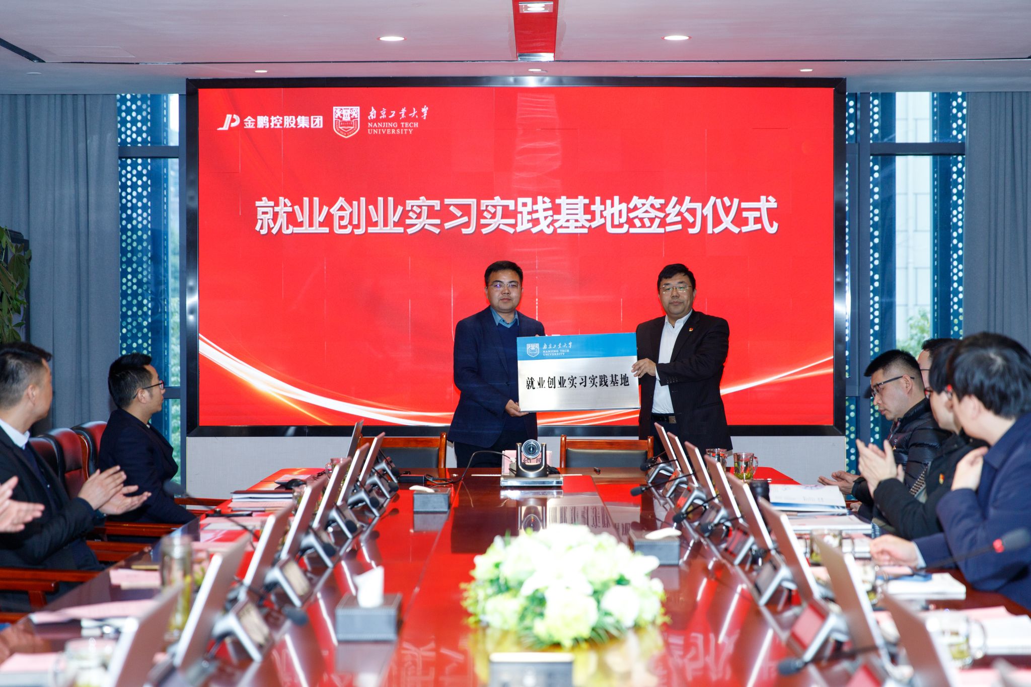 金鹏集团总裁孙元祥对各位的到来表示热烈欢迎。在观看宣传片后,孙总裁对企业发展概况进行了全面介绍,希望双方今后在人才培养、实习基地建设、产学研用等方面建立常态互动机制。