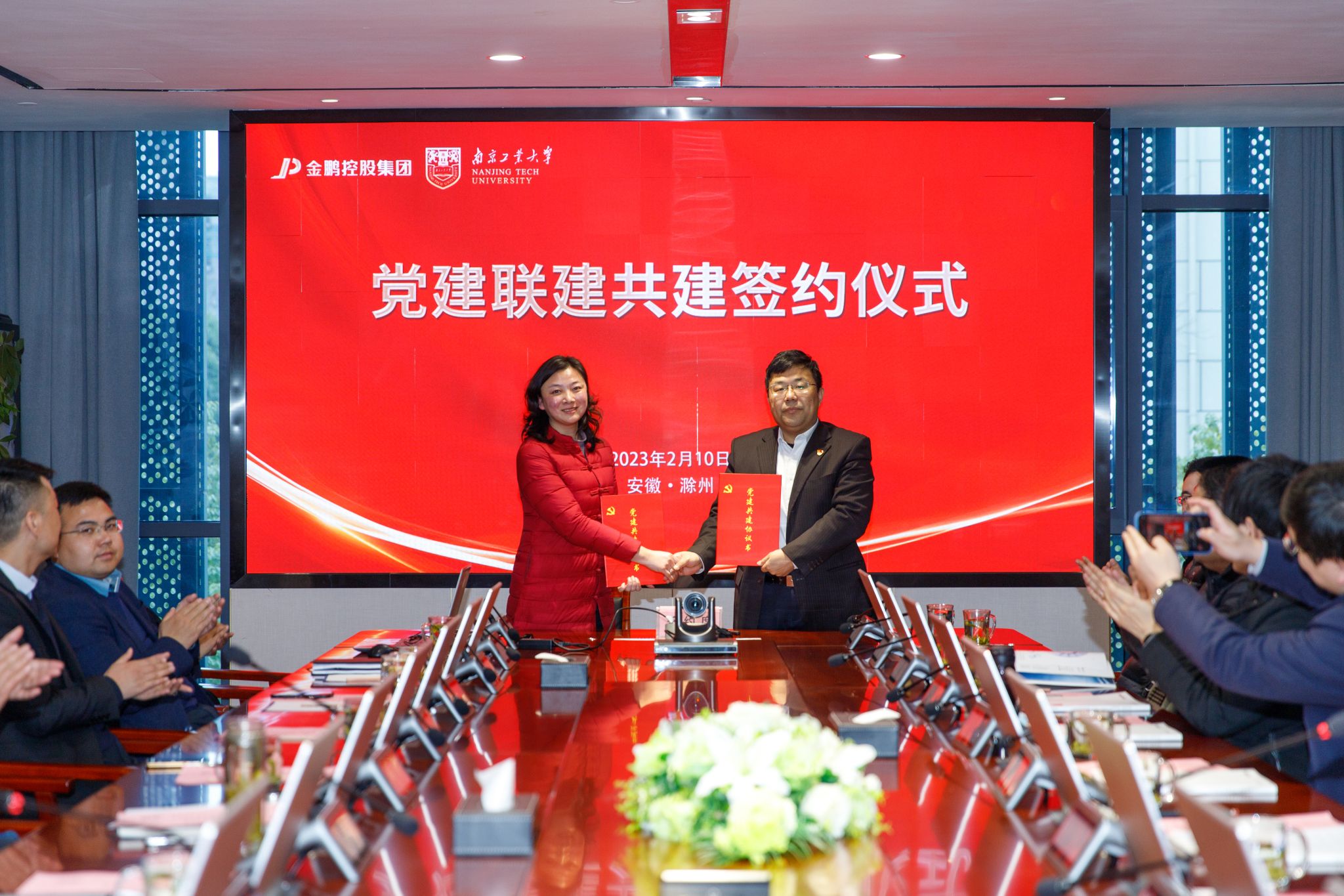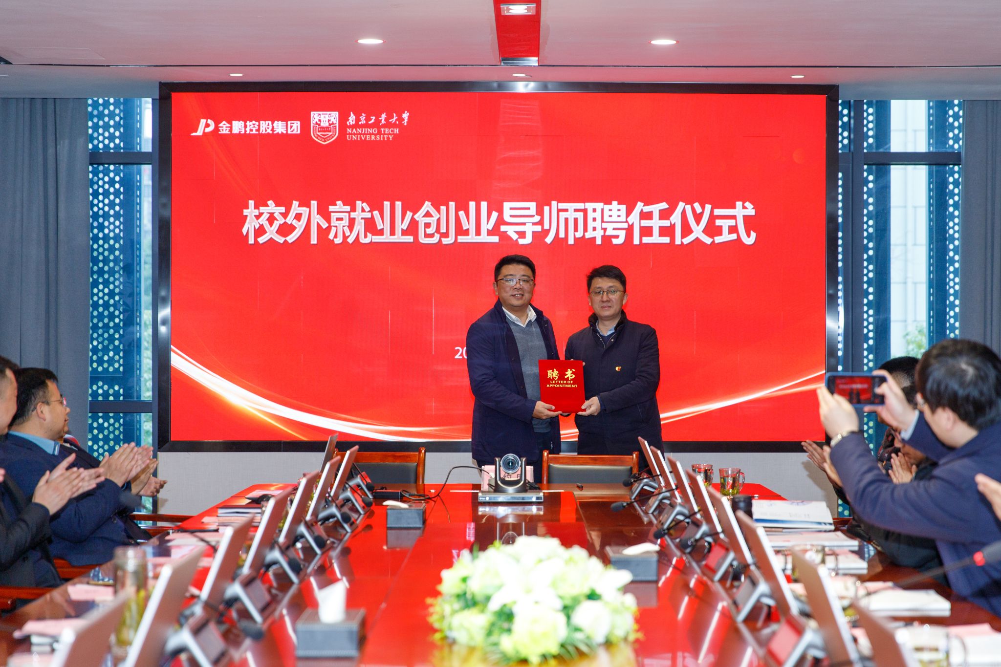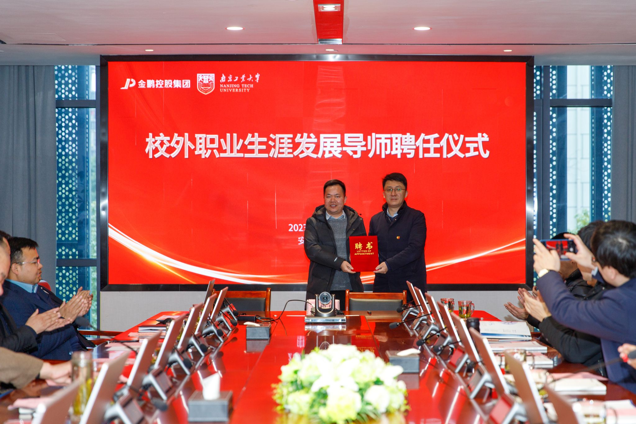 张涛书记对金鹏的发展历程和社会贡献给予了充分肯定。他表示,双方要以此次签约聘任为新的起点,将装配式建筑理论与实践相结合,在人才引育、公司产品、科研揭榜等方面深入合作,共同推进高质量人才培养。