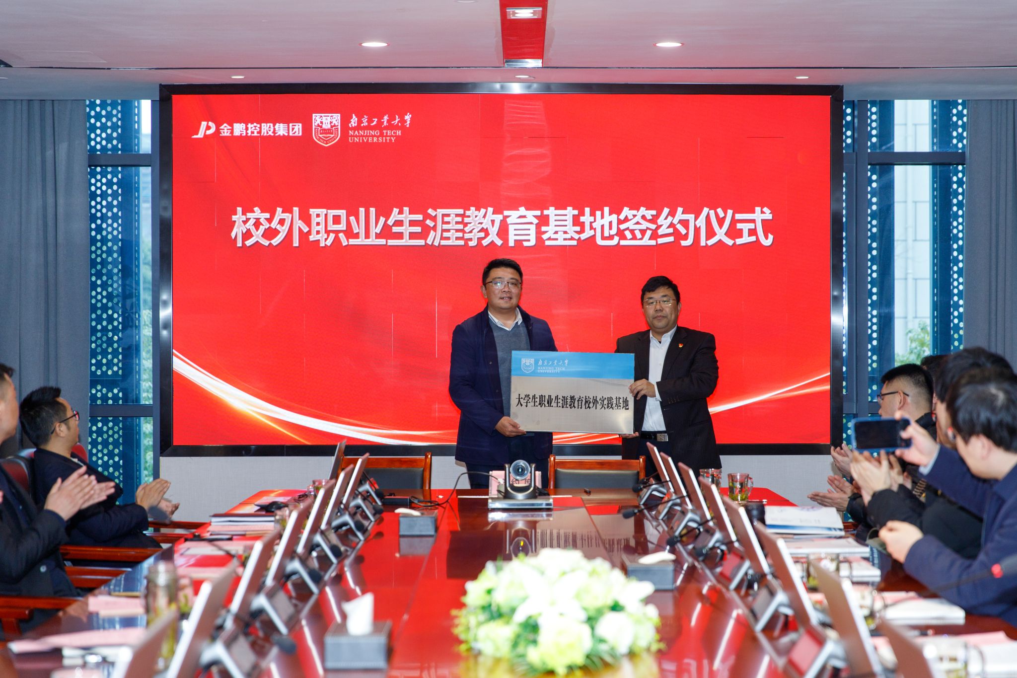 双方签署党建联建 共建协议、就业创业实习实践基地协议、校外职业生涯教育基地协议,并进行授牌仪式。同时聘任郑冀东为校外就业创业导师,聘任潘怀标为校外职业生涯发展导师。