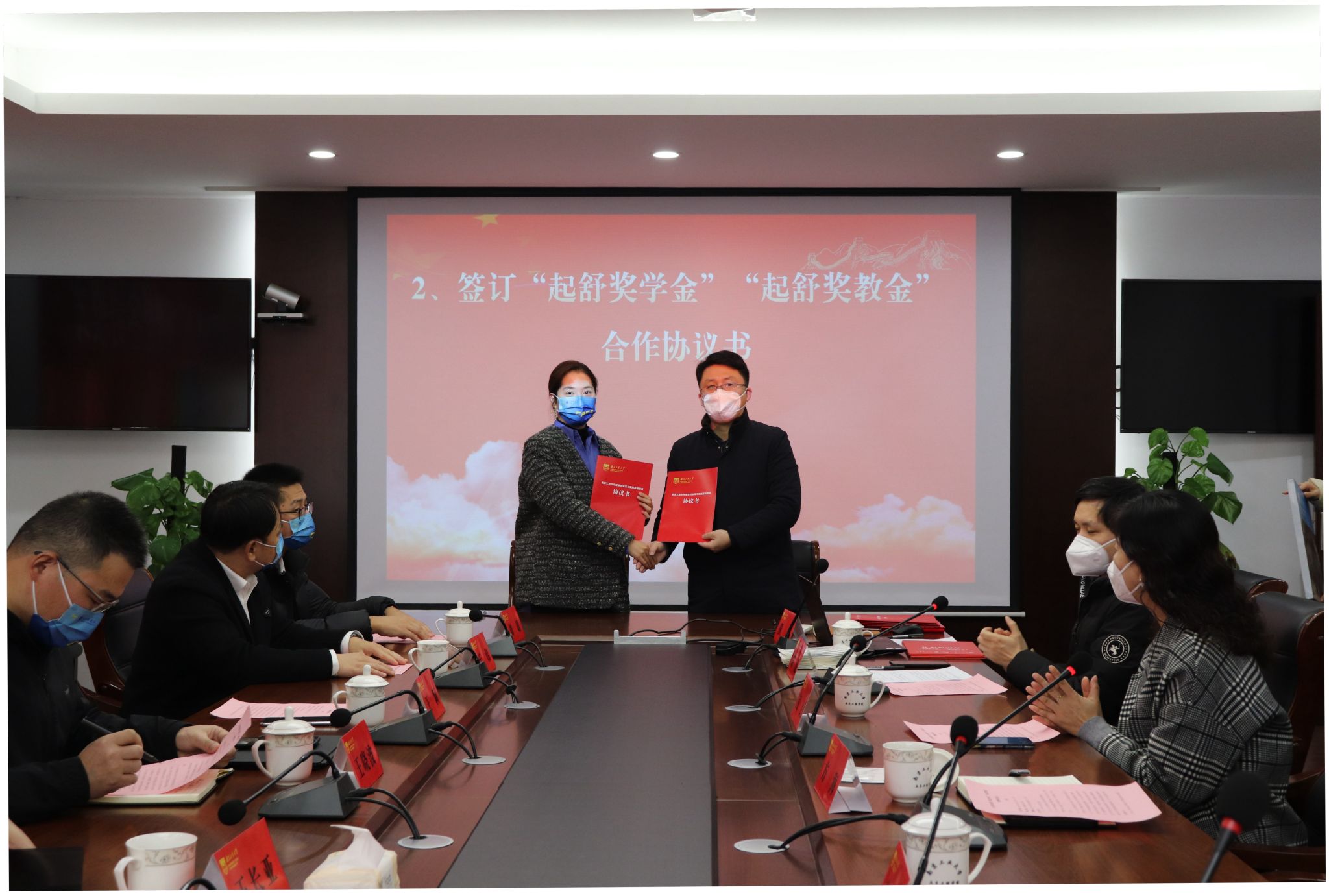 方海经理首先介绍了公司科研情况,并与王长亚CEO签订起舒奖学金”“起舒奖教金合作协议书,与王颖总裁助理签订就业创业实习实践基地协议并授牌。于伟总经理与凌红副处长签订“起舒奖学金”“起舒奖教金”捐赠协议并捐赠资金;凌红副处长向于伟总经理颁发捐赠证书。齐鹏副处长为于伟总经理颁发校外就业创业导师聘书。