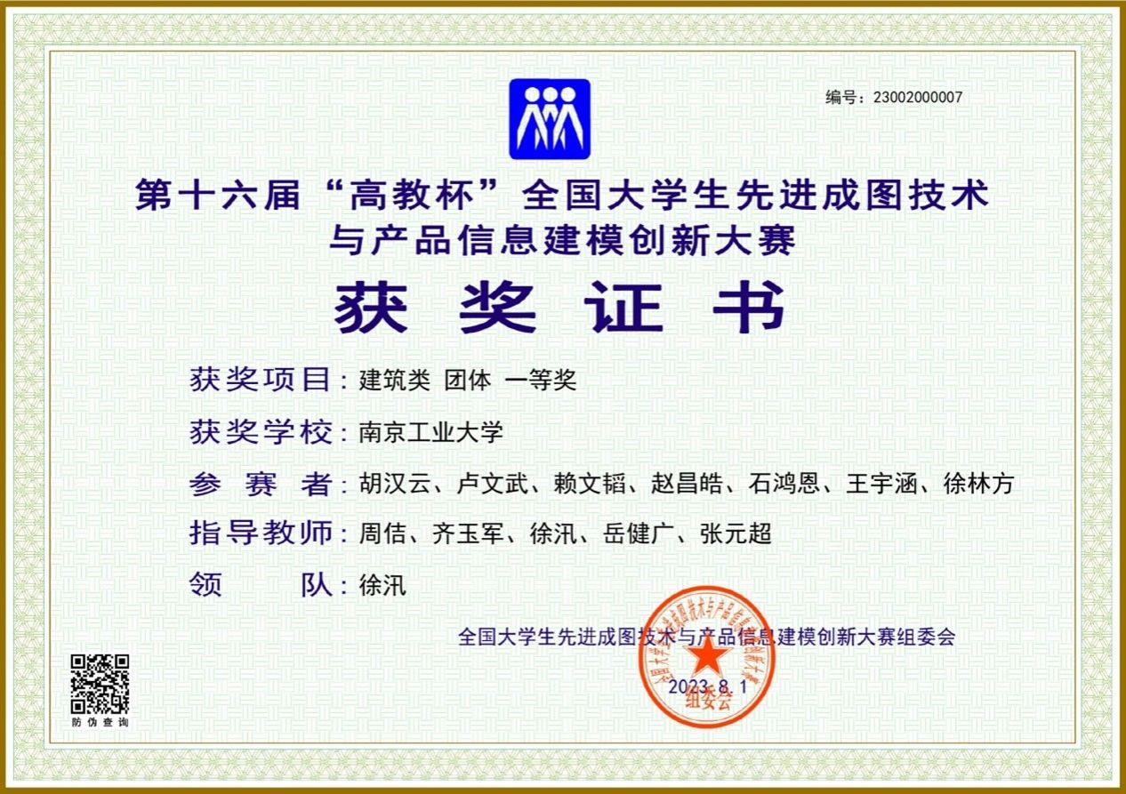 由公司太阳集团tyc33455官网学子组成的公司建筑类代表队,经过师生的共同努力,不负众望再次获得建筑类的最高奖项“团体一等奖”,其中“BIM应用”赛道首次荣获特等奖。自2020年以来公司建筑类代表队已连续四届获此殊荣。太阳集团tyc33455官网由周佶教授领衔的指导教师团队经过连续15年的不懈努力,创立了一整套该领域的创新人才培养模式,总结出丰富的以赛促教的教学经验,并落实于日常教学中。并以此为抓手,有力地促进了该领域的教学改革与创新,取得了丰富的教学成果。为社会培养了一批具有创新精神的优秀人才,获得了用人单位的好评。