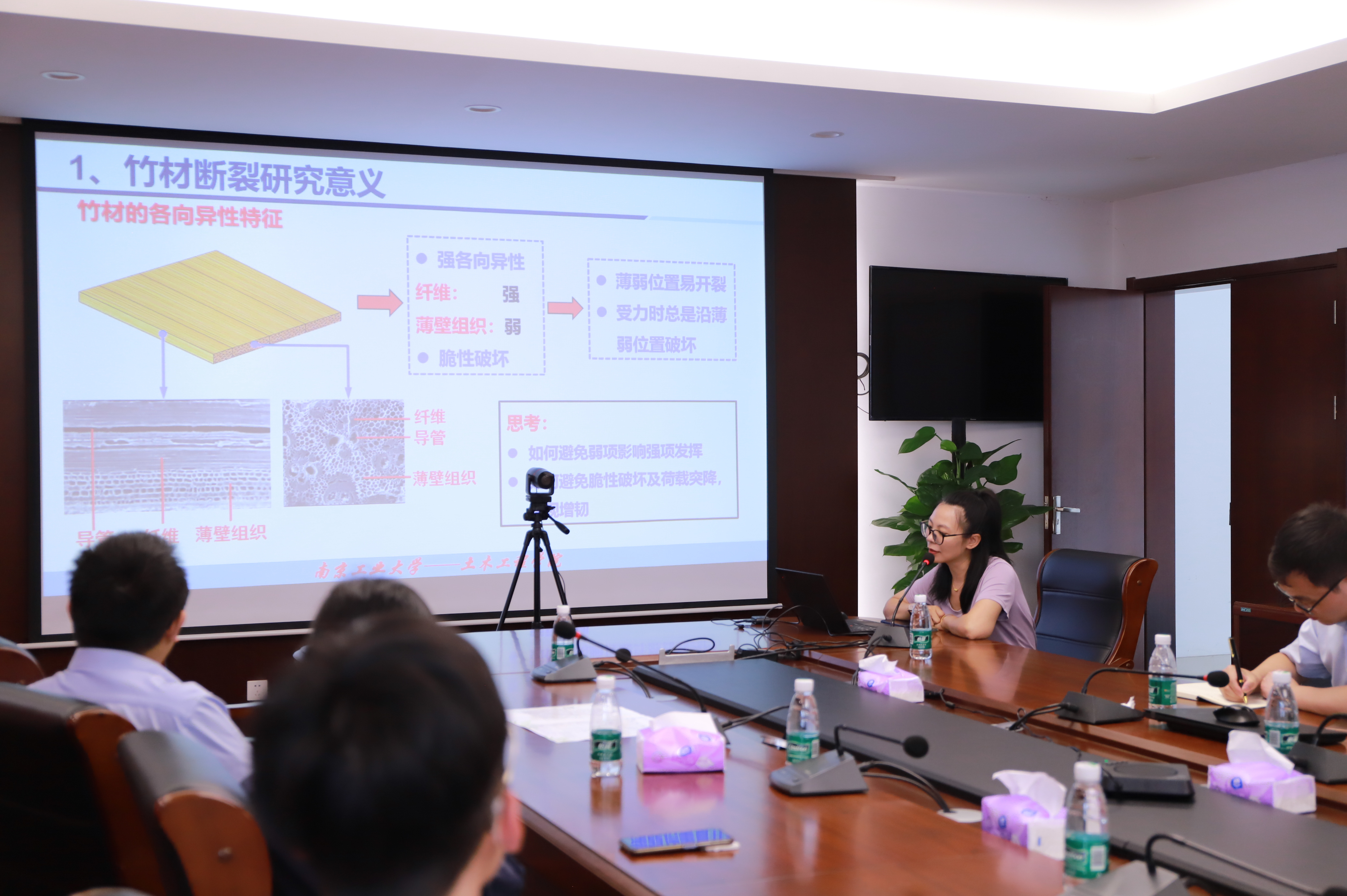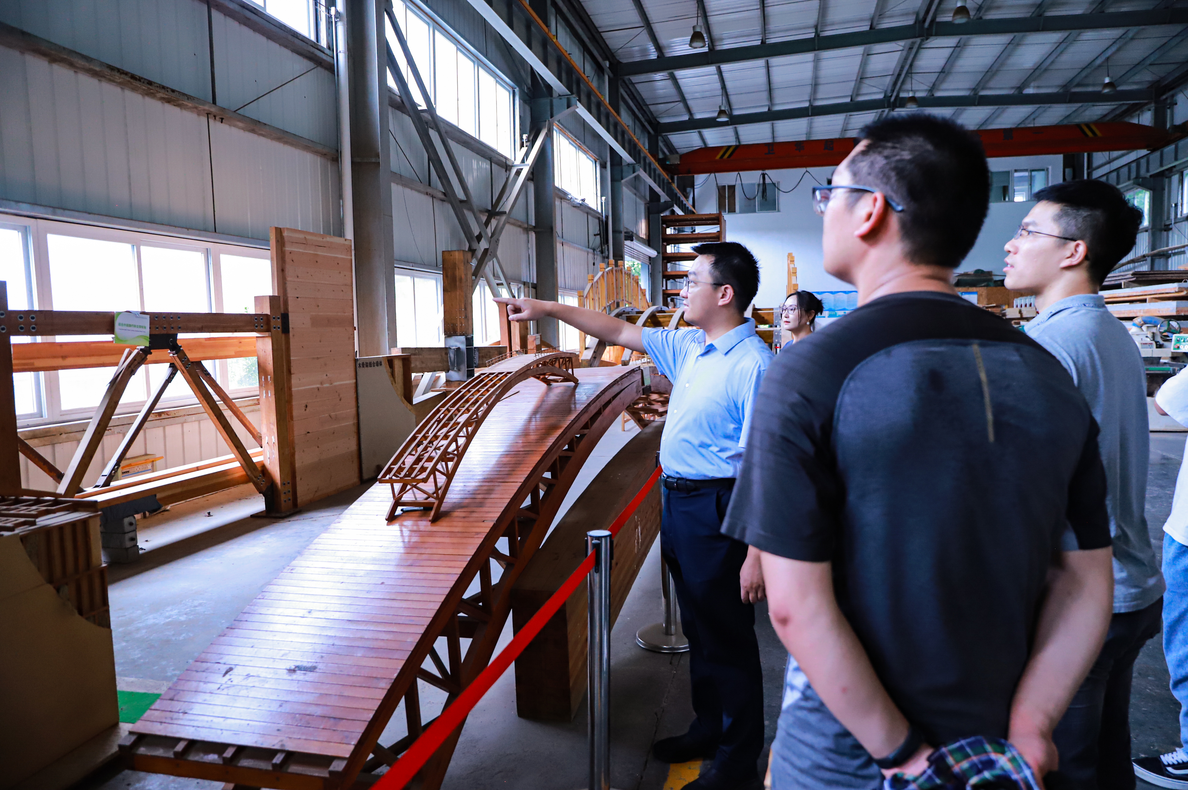 本次暑期公司主要围绕竹材和竹结构在结构工程中的应用为主题,分讲座报告和实验室参观两部分内容。报告安排在上午举行,吴瑶博士、周魁斌教授和徐金俊副教授分别就《结构用胶合竹断裂性能研究》、《竹材的燃烧性能:竹片火蔓延特性》、《负碳模块化智慧村镇建筑》开展了研究课程的讲解,学员分别就相关问题作提问,学员和老师之间积极互动。下午为实验室参观环节,学员们在相关老师的带领下参观学习了太阳集团tyc33455官网木结构实验室的设备、试验试件和实际工程模型,详细了解了对与竹结构具有相似属性的木结构连接和构造。