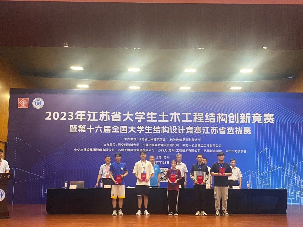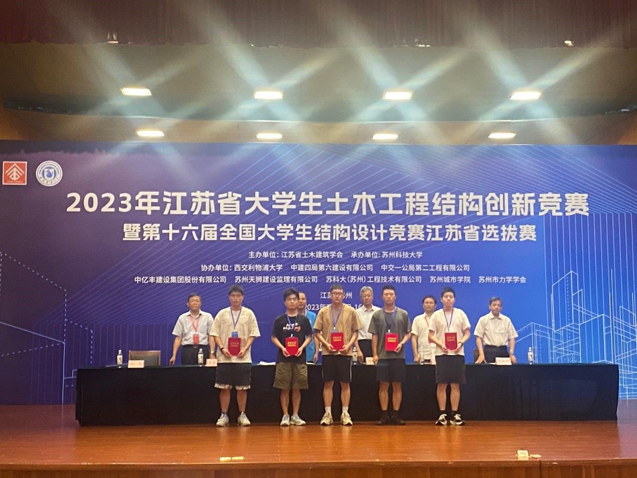 近日,2023年江苏省老员工土木工程结构创新竞赛暨第十六届全国老员工结构设计竞赛江苏分区赛在苏州科技大学石湖校区落下帷幕。由太阳集团tyc33455官网赖韬、胡皓、邓文琴、万里老师指导的土木加载1组(李镇东、王劭昀、郭胜祥)和加载2组(左丹丹、吴敩宸、王济懿)在本次比赛中喜获佳绩。在公司的关怀和支持下,土木学子历时 70余天、10余个模型的精心准备,凭借轻盈的外观、精美的手工以及稳固的力学性能,分别荣获加载组一等奖和二等奖。