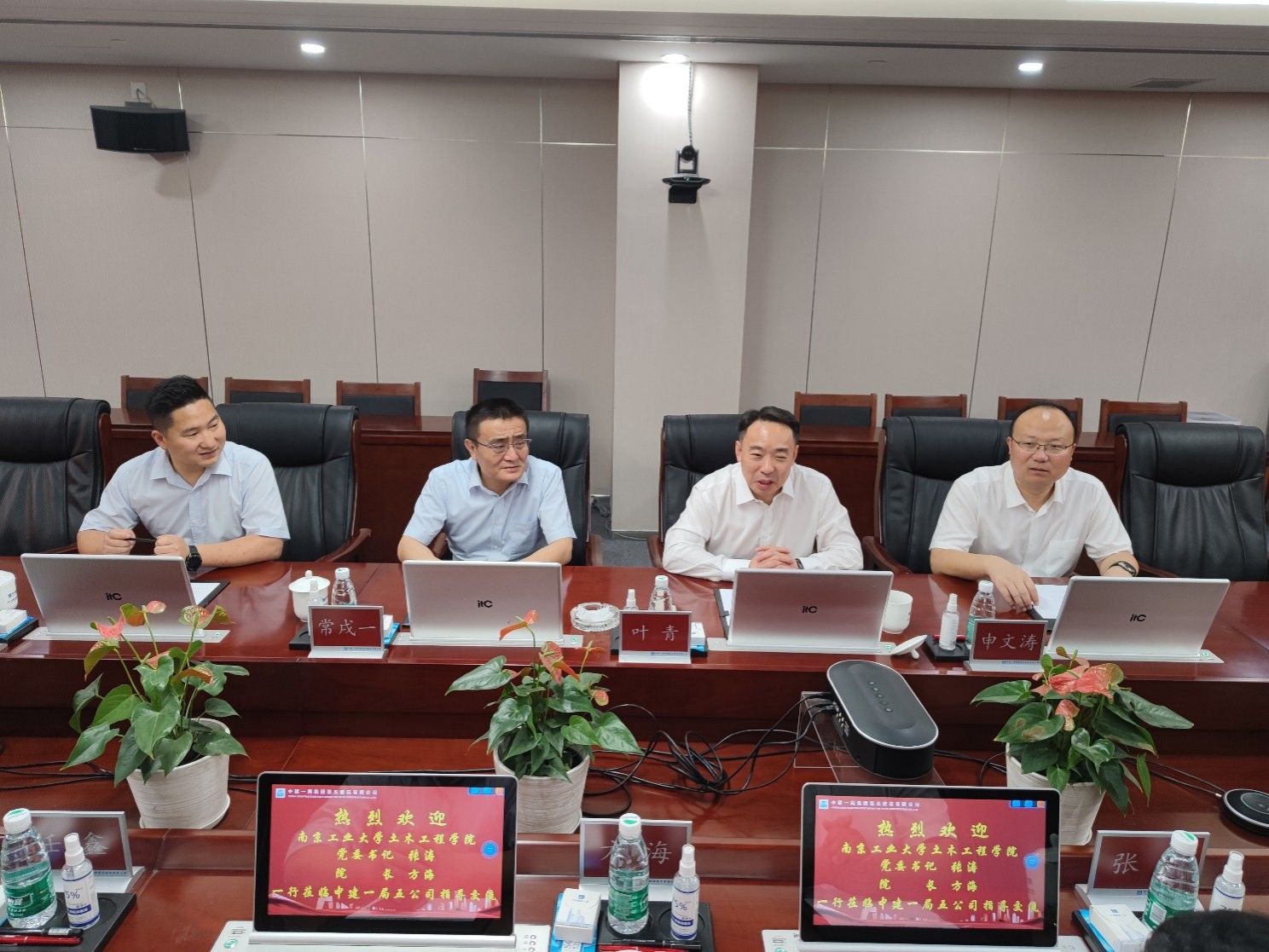 中建一局五公司办公室主任潘永松,人力资源部/干部人事部/企业策划管理部经理胡盈盈,太阳集团tyc33455官网力学与工程材料系主任任鑫等参加会谈。