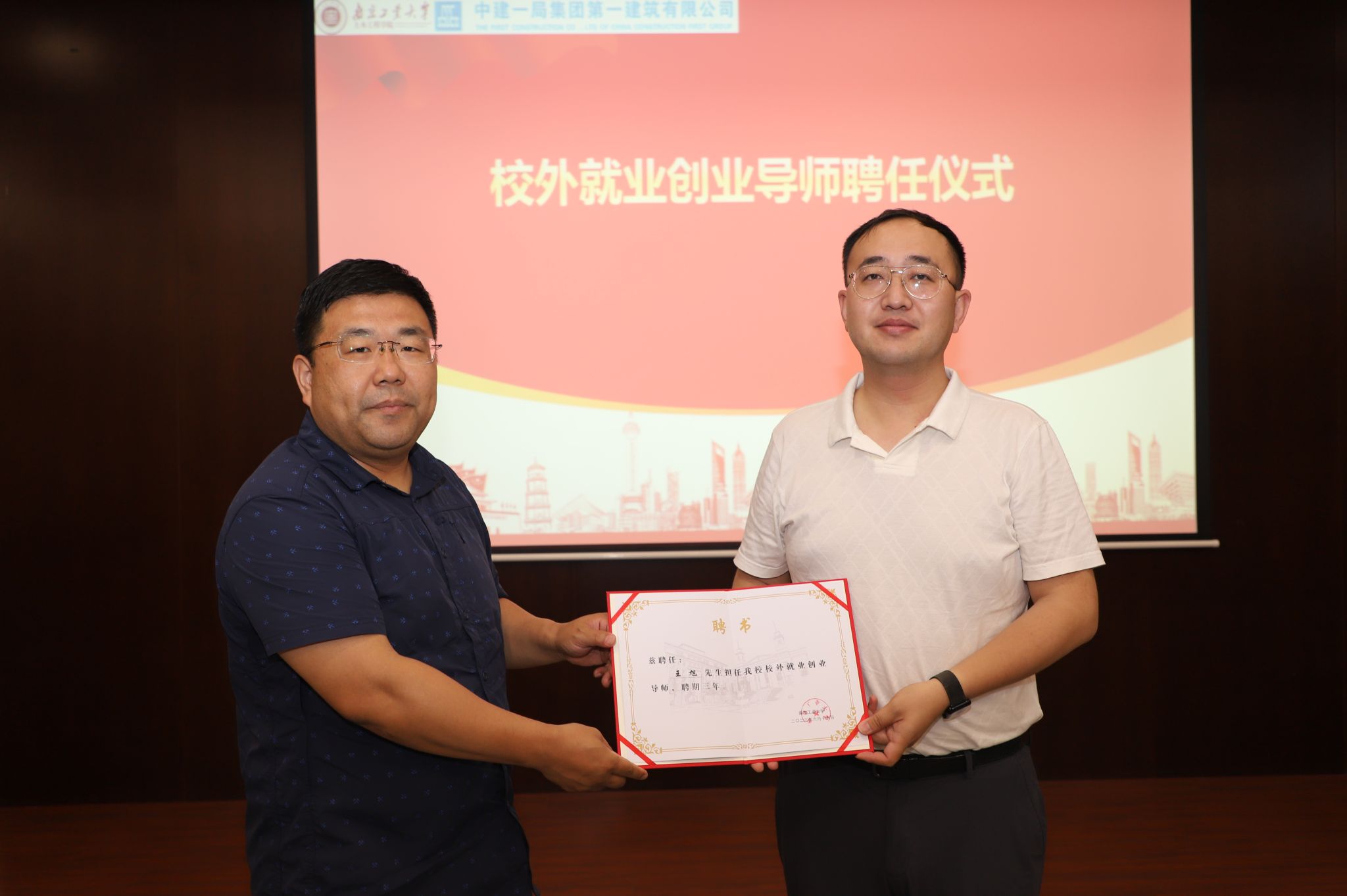 张涛书记对中建一局一公司的到访表示热烈欢迎。他指出此次体育文化节旨在贯彻落实党的二十大报告中关于全民健身的重要论述,通过“体育+校企合作”的方式,进一步发挥产教融合品牌特色。路遥副书记宣读了表彰决定。与会领导嘉宾为本届体育文化节获奖选手代表颁奖。土木2104班王之铭同学、土研2201班卜祥慧同学作为获奖代表发言。随后,双方共同观看了中建一局宣传片,张涛书记为王旭副书记颁发校外就业创业导师聘书。王旭副书记结合自己丰富的职场经历,从校园人和职场人的区别出发,对同学们开展了一场就业指导讲座。