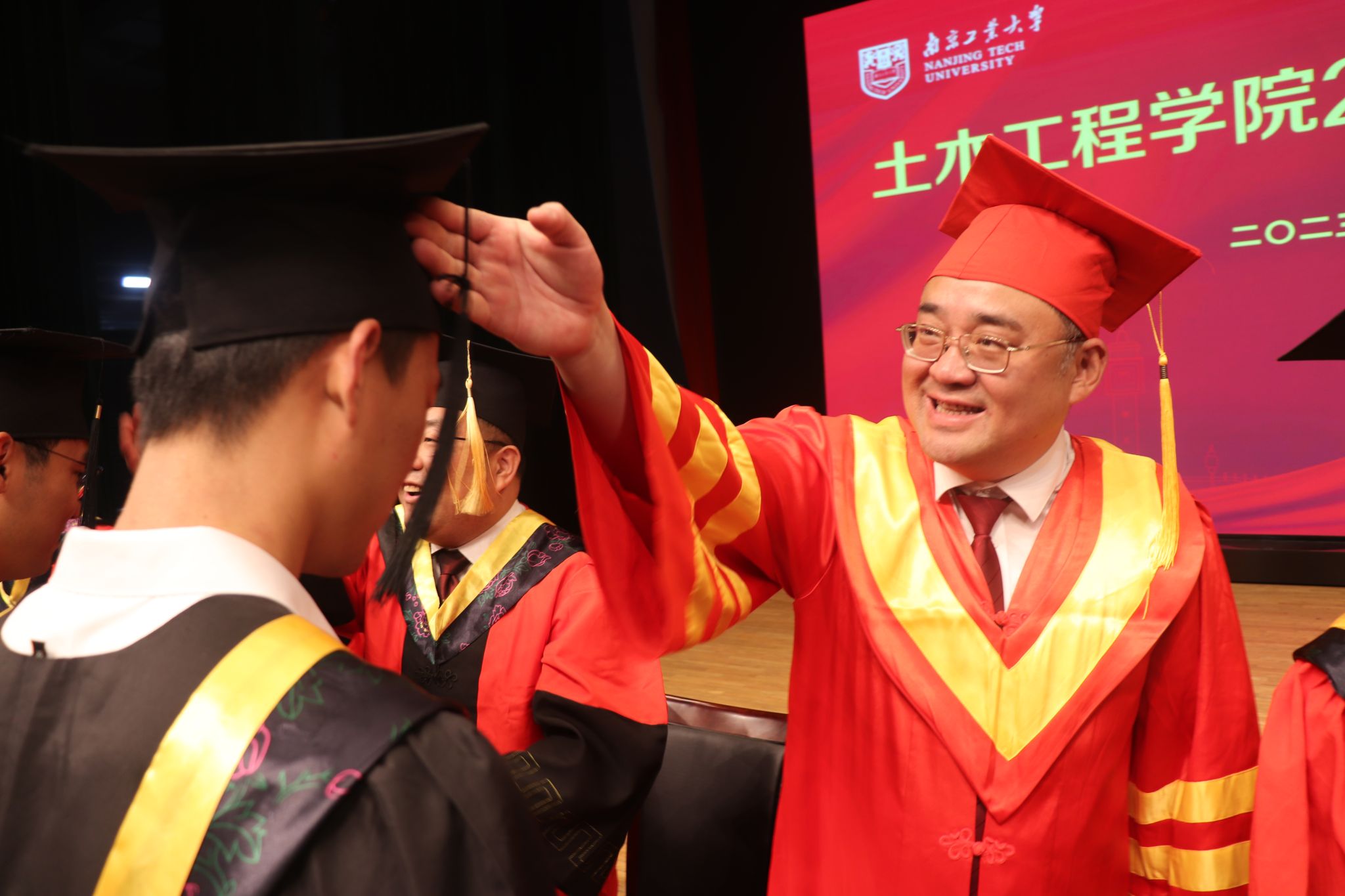 师长们为毕业生代表授予学位并拨穗