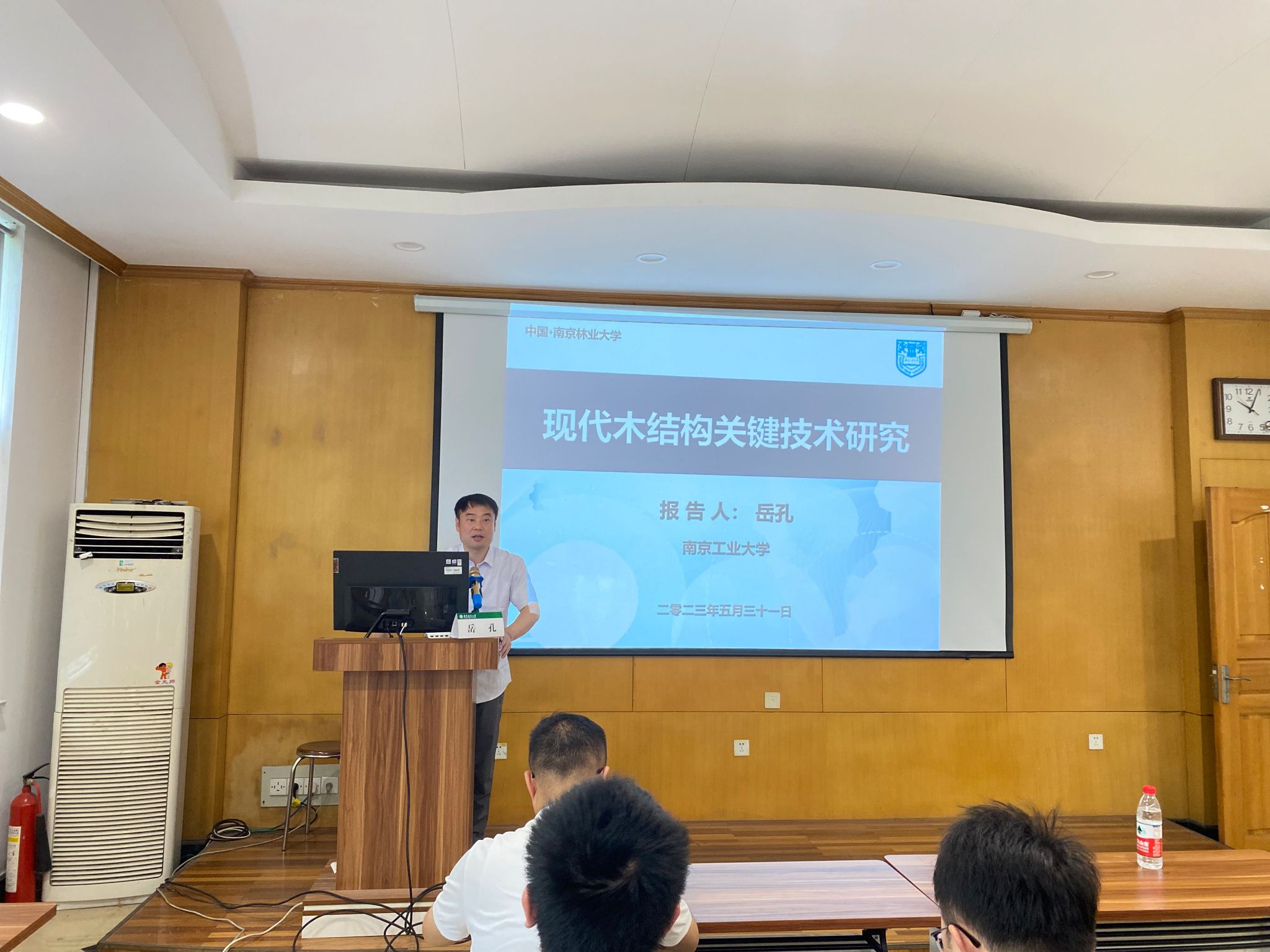 调研期间,岳孔教授面向南林大土木公司员工详细介绍了公司、公司的办学实力、科研特色,并作题为《现代木结构关键技术研究》的学术报告。岳教授围绕现代木结构的典型特征、典型应用及未来展望,全方位展现了现代木结构绿色发展、生态宜居的“双碳”前景。报告会后,岳教授还与南林大土木公司相关专业教师围绕专业建设、学科前沿开展深入交流。