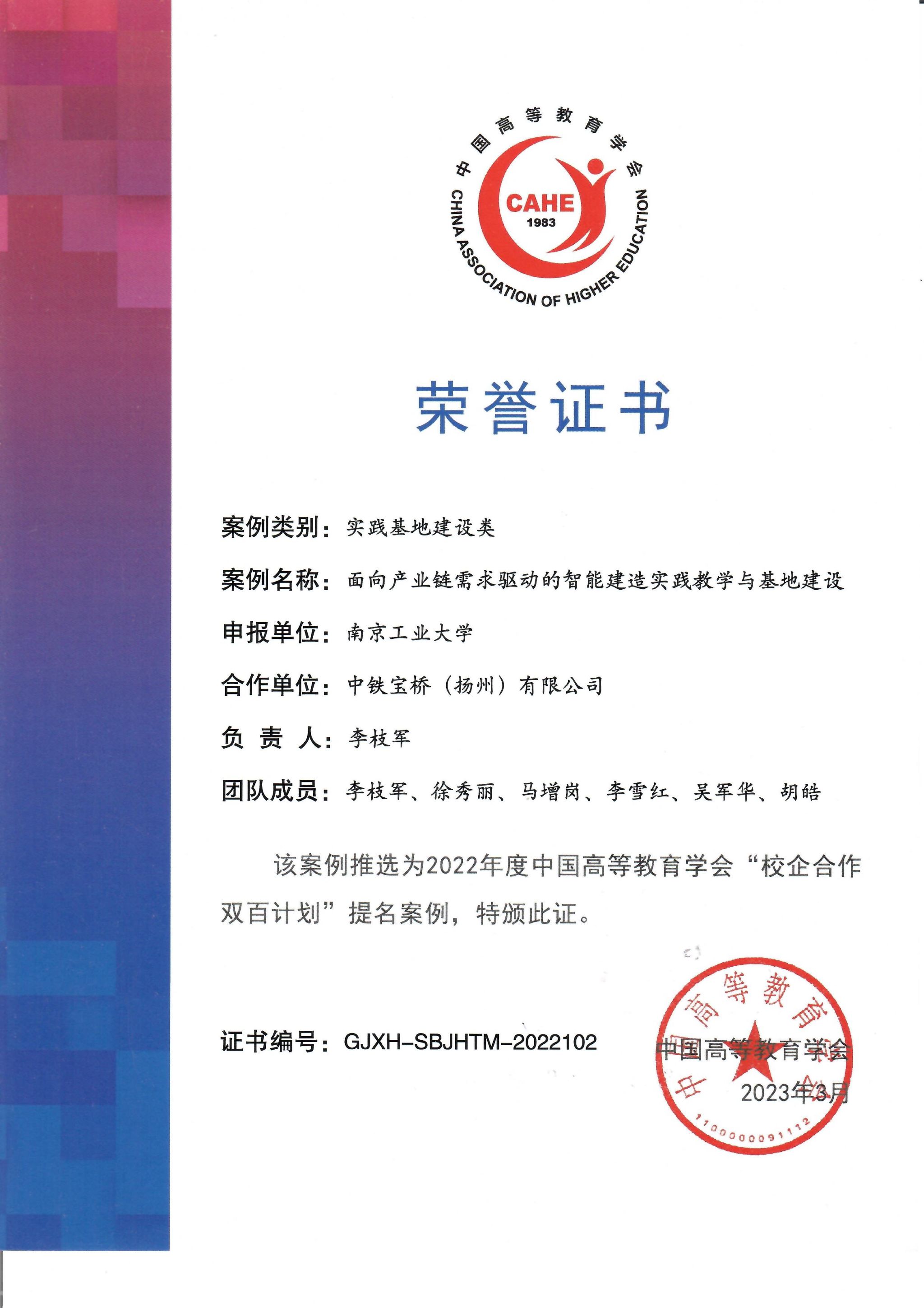 喜报:公司李枝军老师牵头负责的实践基地建设案例获2022年度中国高等教育学会“校企合作双百计划”提名案例
