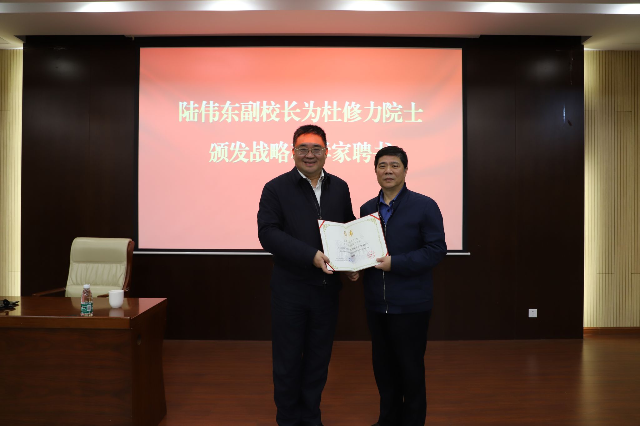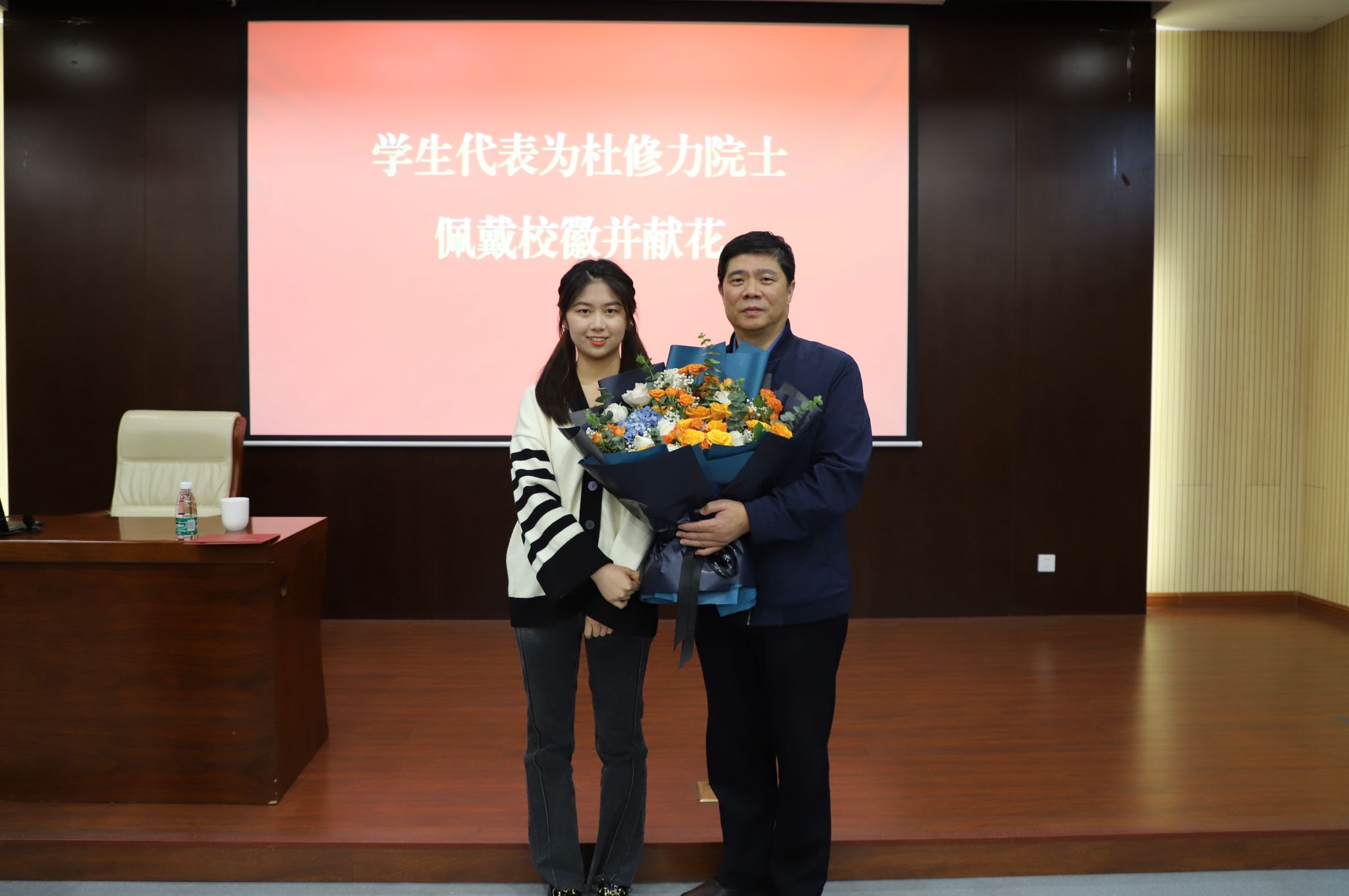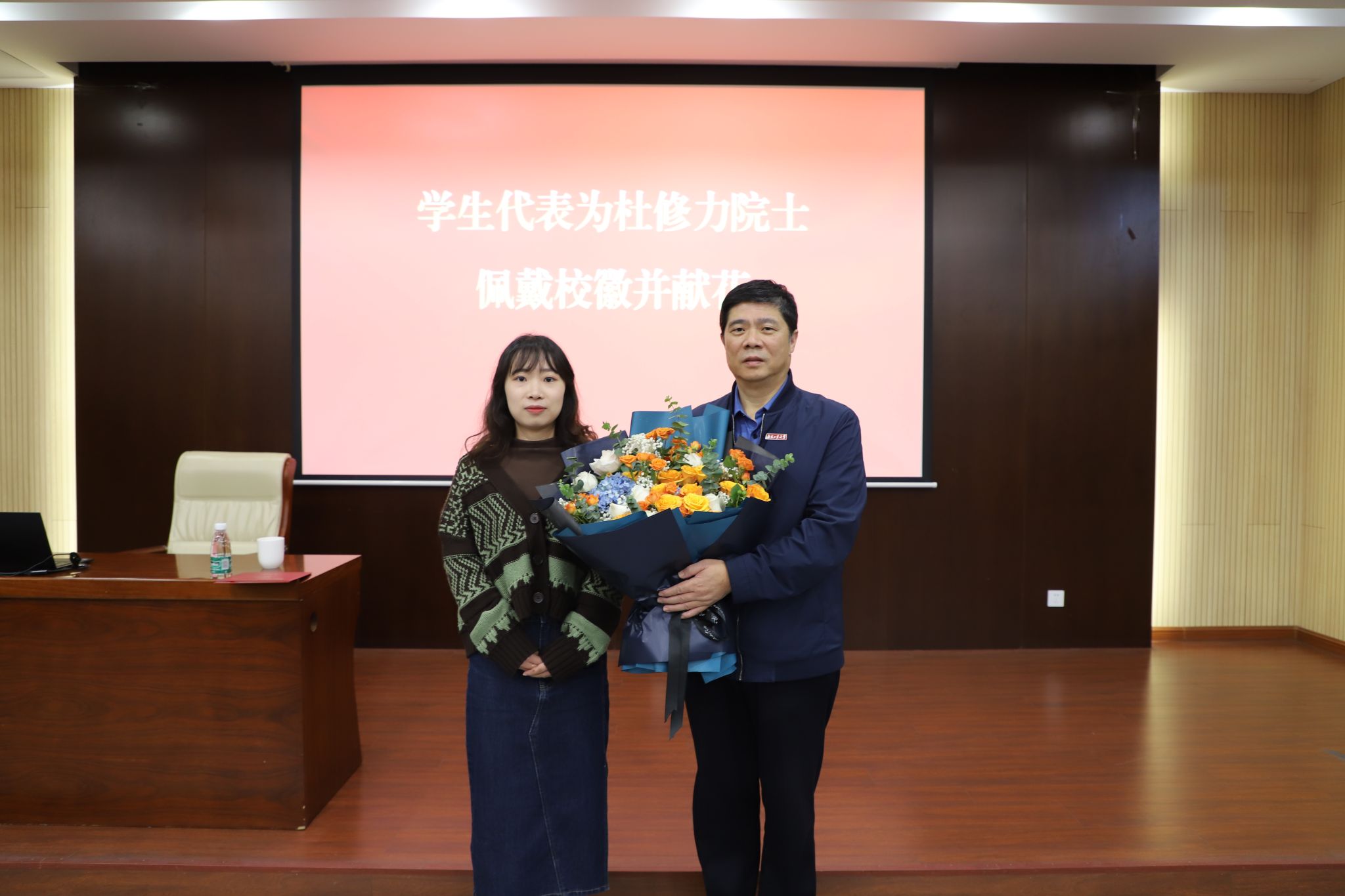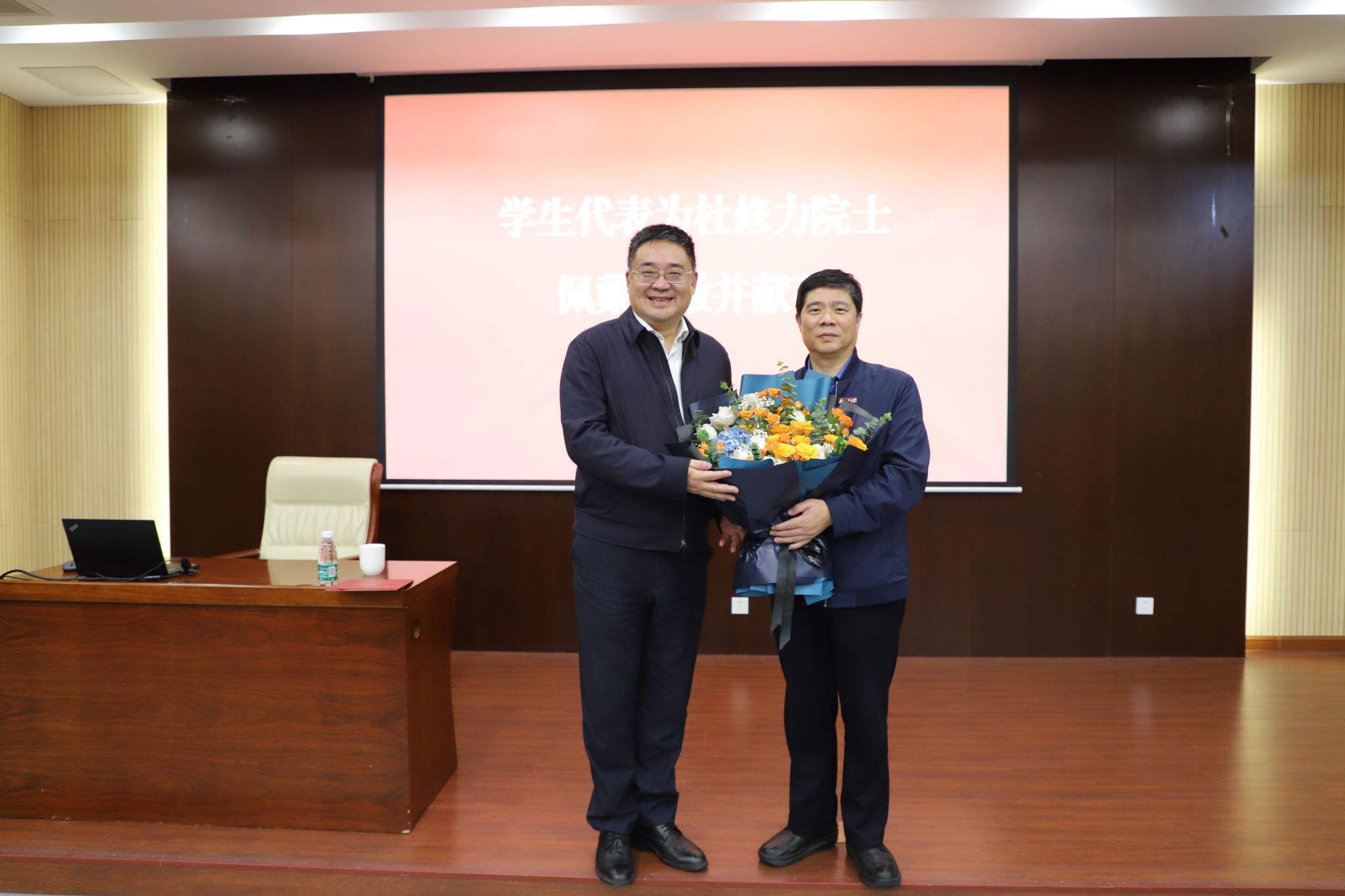 王曙光处长介绍了杜修力院士在工程抗震相关领域的主要贡献与成就,陆伟东副董事长为杜修力院士颁发战略科学家聘书,员工代表为其佩戴校徽并献花。杜修力院士致辞,他向全体师生表达感谢,对受聘为公司战略科学家深感荣幸,表示今后将建一步加强与公司的学术交流与合作,为共同推动公司高质量发展做出贡献。