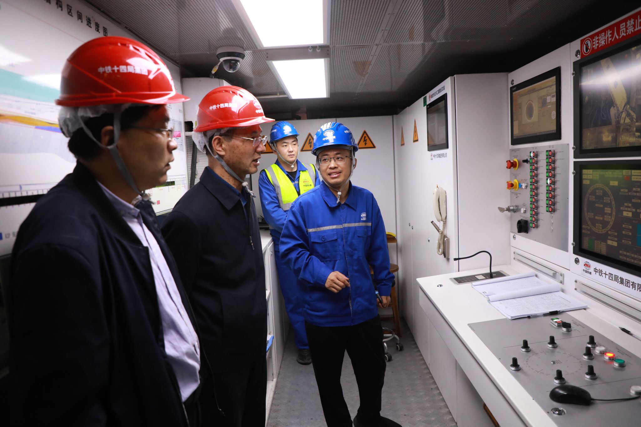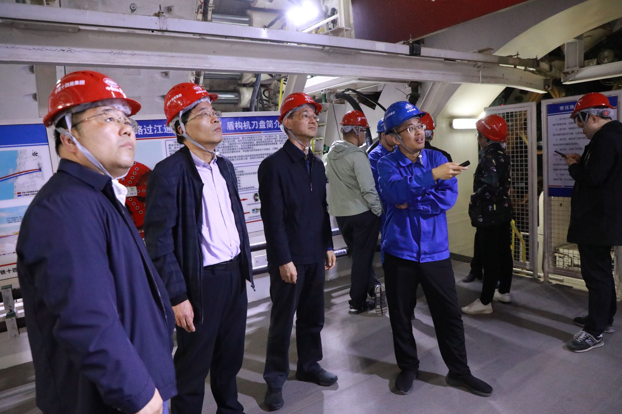 吴胜红副书记一行来到中铁十四局大盾构公司南京建宁西路过江通道项目现场,与陈明华书记、李福林总工等亲切交流。项目部领导对吴书记一行到公司访企拓岗表示热烈欢迎,回顾了近年来校企人才合作的成果及公司毕业生在公司的发展情况,详细介绍了南京建宁西路过江通道“创新号”大型盾构机掘进工程进展情况。吴书记对大盾构公司克服困难、勇挑重担、勇于创新、践行央企担当表示充分赞赏,希望校企双方未来在人才培养、毕业生就业及科学研究等方面进一步深入合作,为进一步推动科产教全面融合做出新的贡献。