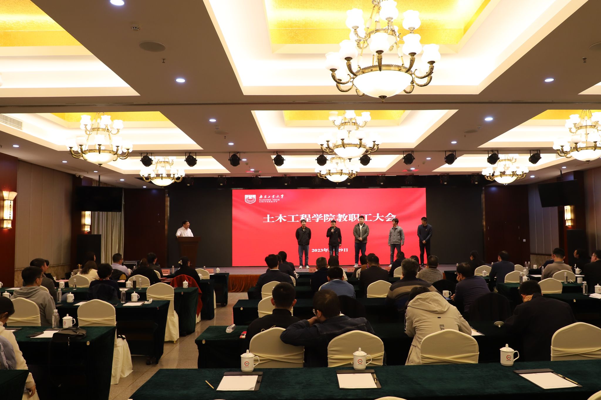参观结束后,公司于南钢宾馆会议室召开全院教职工大会,会议由公司党委书记张涛主持。会上,全体教师集体观看了南钢企业宣传片,听取南钢集团特钢营销处毛乃旭处长介绍集团产品和研发方向,并集中观看党风廉政建设专题教育片《党史中的清廉故事》。公司还邀请南京市公安局交通警察支队第五大队蒋磊教导员、校保卫处徐东副处长及科研院产学研合作科卢奇老师,先后以“远离酒驾,平安回家”、“教工防电诈”、“横向科研办理要点”为主题进行了专题宣讲和细致解读。会上,近期新入职公司的5位青年教师还介绍了各自的研究领域。