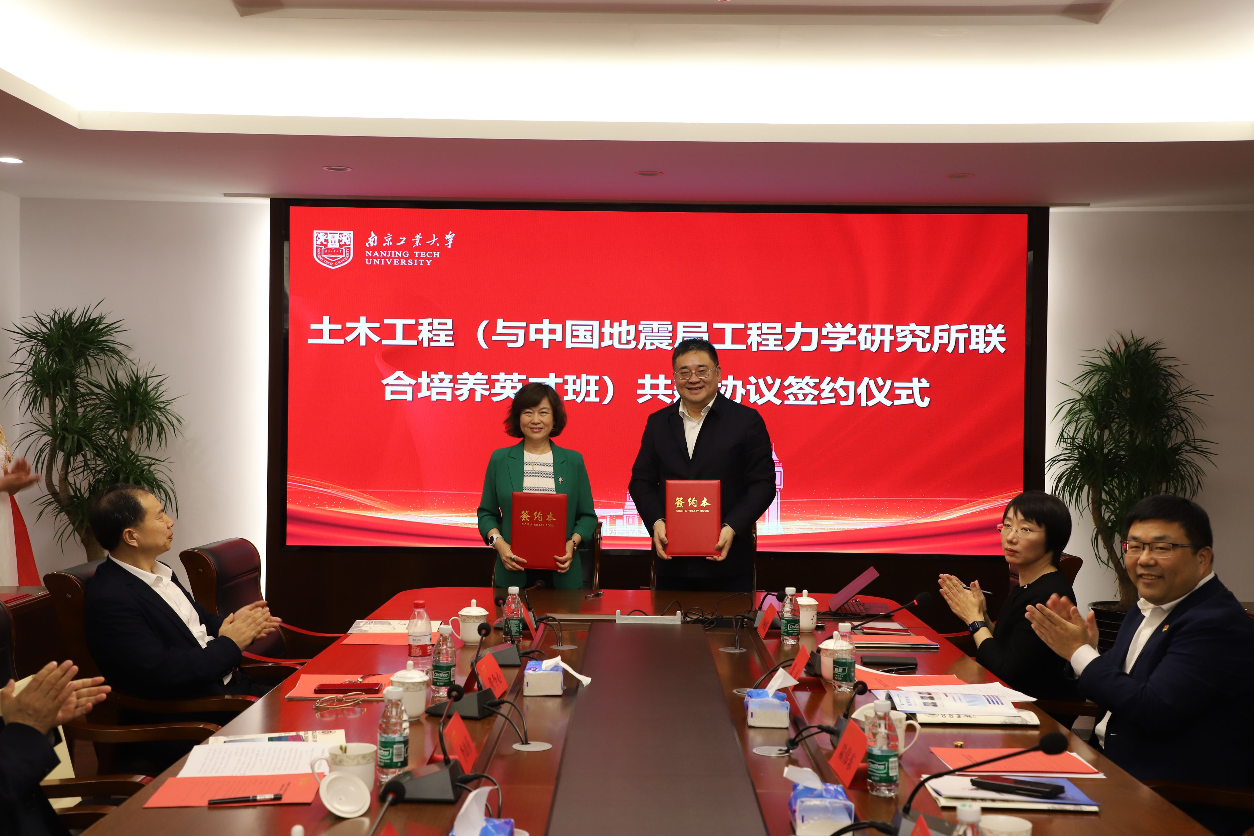中国地震局工程力学研究所副所长张令心介绍了研究所情况,太阳集团tyc33455官网经理方海介绍了公司情况。张令心副所长和陆伟东副董事长签署“土木工程(与中国地震局工程力学研究所联合培养英才班)”共建协议,李山有所长和陆伟东副董事长共同揭牌。