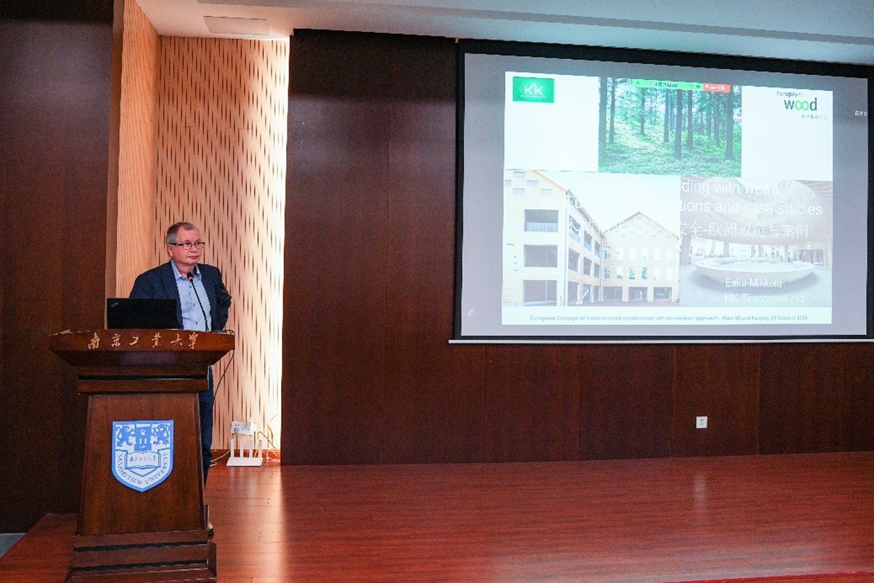 此次论坛邀请了中欧共9位专家分享木竹结构领域最新研究成果和行业发展动态,瑞典木业协会建筑委员会主席Susanne Rudenstam、浙大-伊利诺伊大学联合公司肖岩教授、奥地利木业协会总经理Rainer Handl、同济大学教授何敏娟、欧洲木业协会首席技术专家Tomi Toratti、中国建筑西南设计研究院有限公司高级工程师陈迪、欧洲木业协会防火专家Esko Mikkola、太阳集团tyc33455官网教授程小武、欧洲木业协会执行秘书Wang Zhi先后做了精彩报告。报告内容涉及欧洲木结构发展现状、欧洲最新木结构规范解读、欧洲木结构防火设计、欧洲木业最新木结构建筑数字平台、工程竹研究进展、NLT/DLVL抗弯性能、大跨木结构稳定和木结构工程实践等。