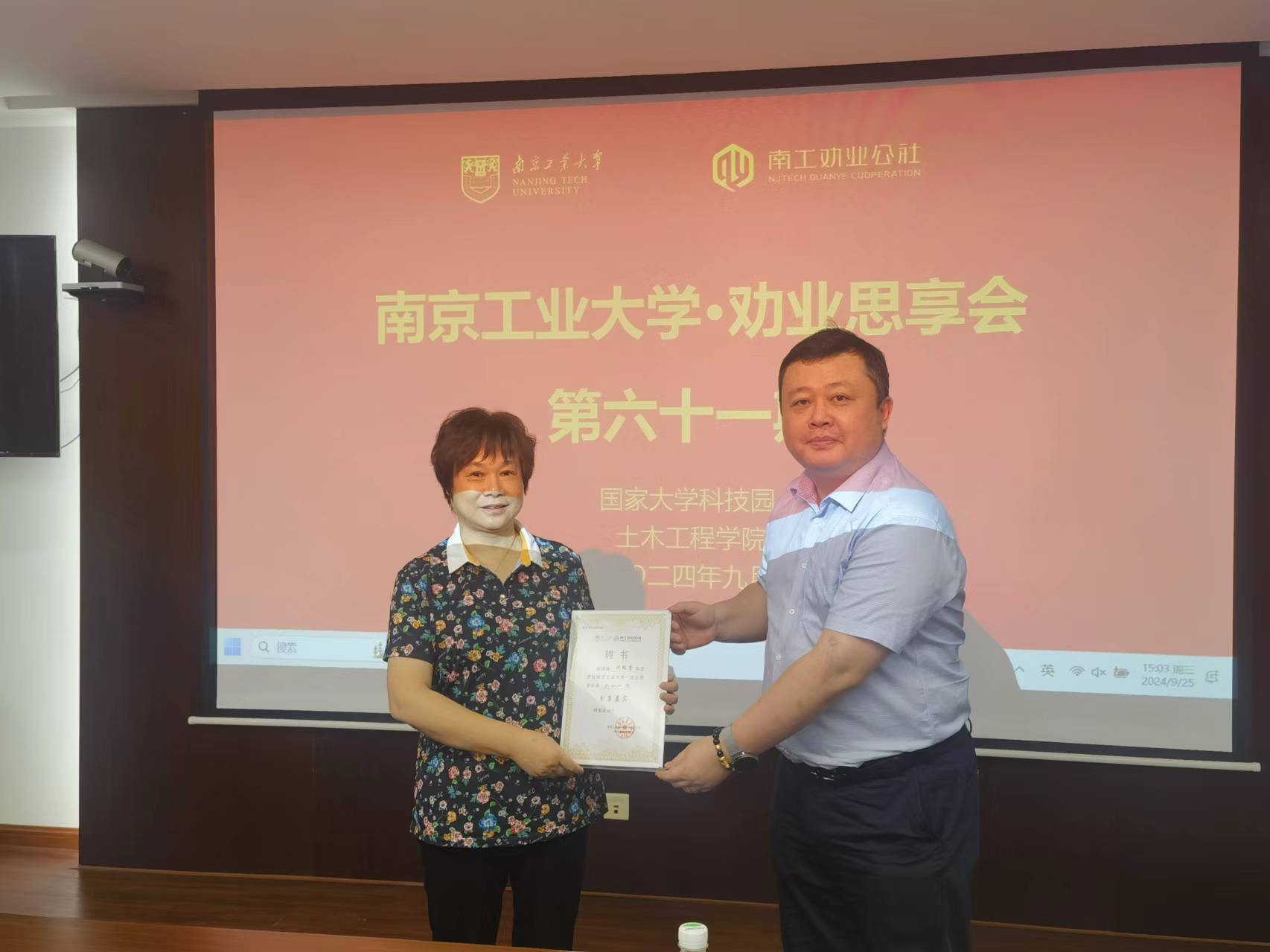 大学科技园管理办公室副主任、技术转移中心副主任张宁为许桂青颁发分享嘉宾证书。