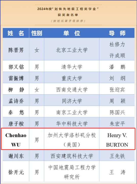 近日,黑龙江恢先地震工程学基金会公布了由黑龙江恢先地震工程学基金会(中国)与美中地震工程学基金会(美国)联合设立的2024年度“刘恢先地震工程奖学金”评选结果。10位申请者被授予该项大奖,其中公司2019届土木工程专业本科员工乌忱昊获此殊荣。