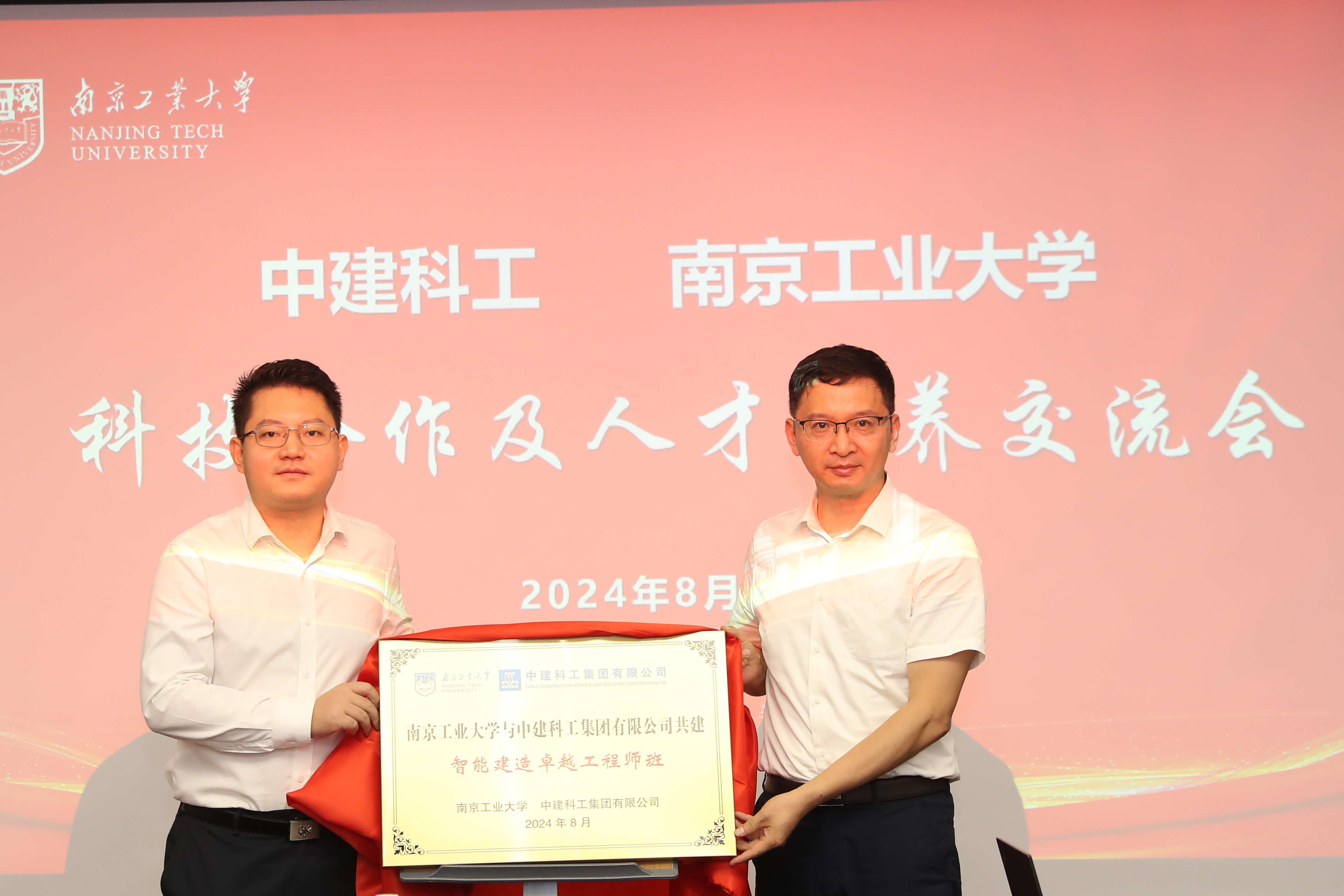 中建科工创新研究开发院经理、创新业务管理部总经理李任戈介绍了中建科工集团有限公司的相关情况。太阳集团tyc33455官网经理方海和副经理岳健广分别介绍了公司及智能建造卓越工程师班的相关情况。中建科工集团有限公司人力资源部总经理方兵与太阳集团tyc33455官网教务处处长陆春华共同为“智能建造卓越工程师班”揭牌。中建科工党委书记、董事长吴红涛与太阳集团tyc33455官网董事长蒋军成共同为“绿色智能建造研究院”揭牌。