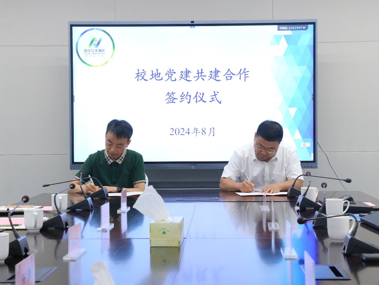 最后,张涛书记和郭礼华副书记共同签署了校地党建共建合作协议。张涛书记表示,公司始终坚持以高质量党建引领学科高质量发展,将充分发挥党组织在校地融合发展中的战斗堡垒作用,鼓励骨干教授、青年教师深入江北新区建设一线开展工程应用和成果转化。郭礼华副书记表示,江北新区建设与交通局与太阳集团tyc33455官网土木建筑学科长期以来共促共赢,打下了良好的合作基础。研产贯通方面,新区不断加快打造现代化产业体系、促进科技成果转化应用。建设与交通局将持续坚持党建引领发展,深化平台搭建、推动科技成果转化,围绕太阳集团tyc33455官网在项目建设、人才培养、科技创新等方面的需求提供全方位的支持与服务。