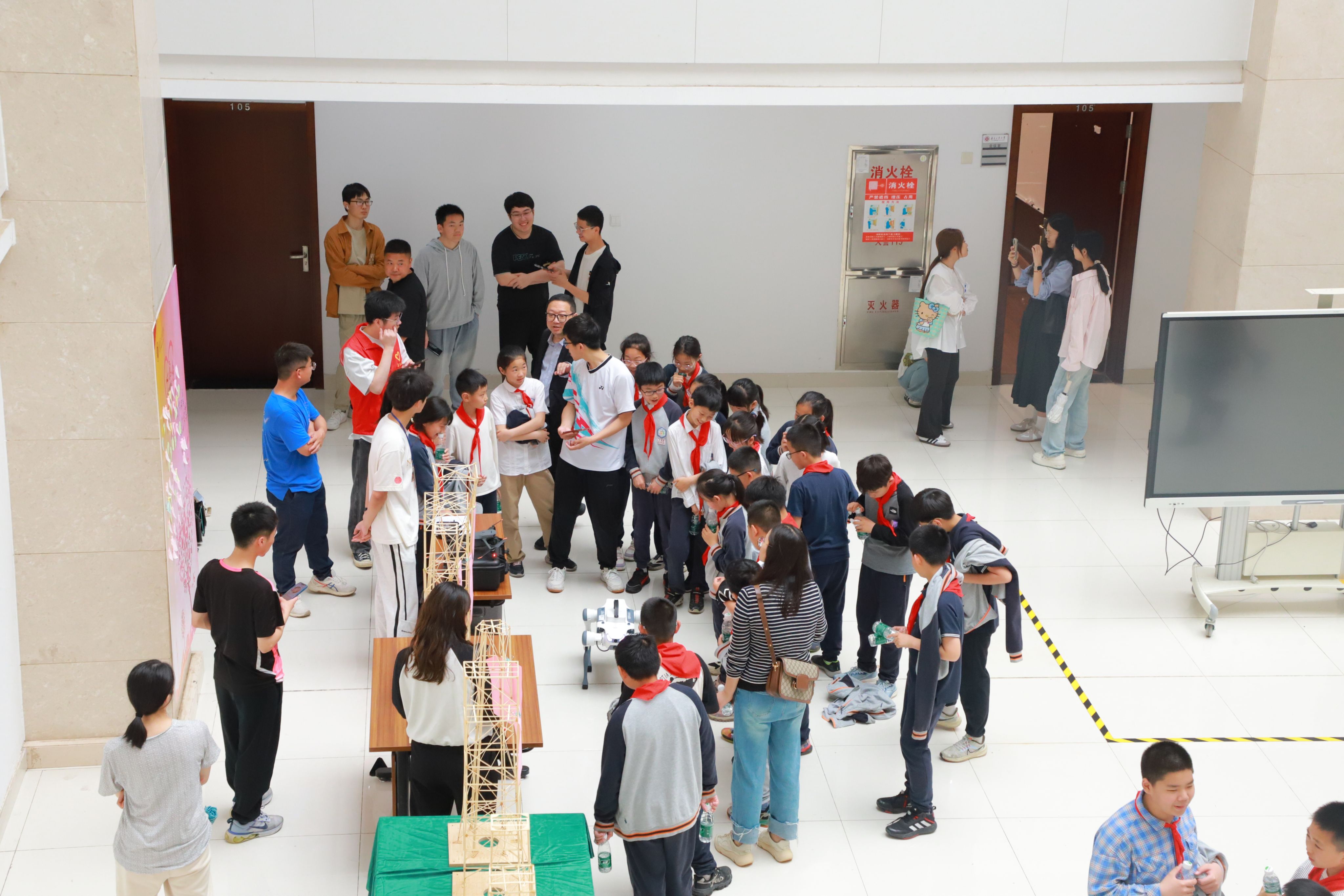 揭牌仪式后,公司开展了以“人人讲安全、个个会应急——着力提升基层防灾避险能力”为主题的科普活动,活动精彩纷呈、别出心裁。在江苏省土木工程与防灾减灾重点实验室,万里教授演示了大型现代木结构地震模拟振动台试验;在立德楼广场,岳健广副经理向太阳集团tyc33455官网实验小学赠送防震减灾科普读物,防灾系主任蔡忠奎主持了“中小学抗震避险技能连环画”、“应急医疗救治培训”与“太阳集团tyc33455官网防震减灾教学成果展”;在立德楼中庭,小员工、本科生和研究生们共同参与了江苏省结构设计大赛预选赛的振动台加载,模型加载成功时引发小员工的阵阵欢呼。在“专家访谈”环节,汶川地震抗震救灾专家陆伟东副董事长和胡夏闽教授给大家带来一场别开生面的思政课,大家既学习了抗震知识又感悟了抗震精神。在“专家讲座”环节,徐峰博士关于《工程减震隔震技术在防震减灾的应用》和马海韵教授关于《自然灾害防治和应急管理国际合作实践》的讲座增强了员工对防震减灾认识和理解。在“情景相声”环节,由公司蔡忠奎与高耀远老师指导、防灾减灾志愿服务队员工出演的《你家房子体检了吗》以通俗易懂的方式切实增强了防震减灾的科普宣传效果。