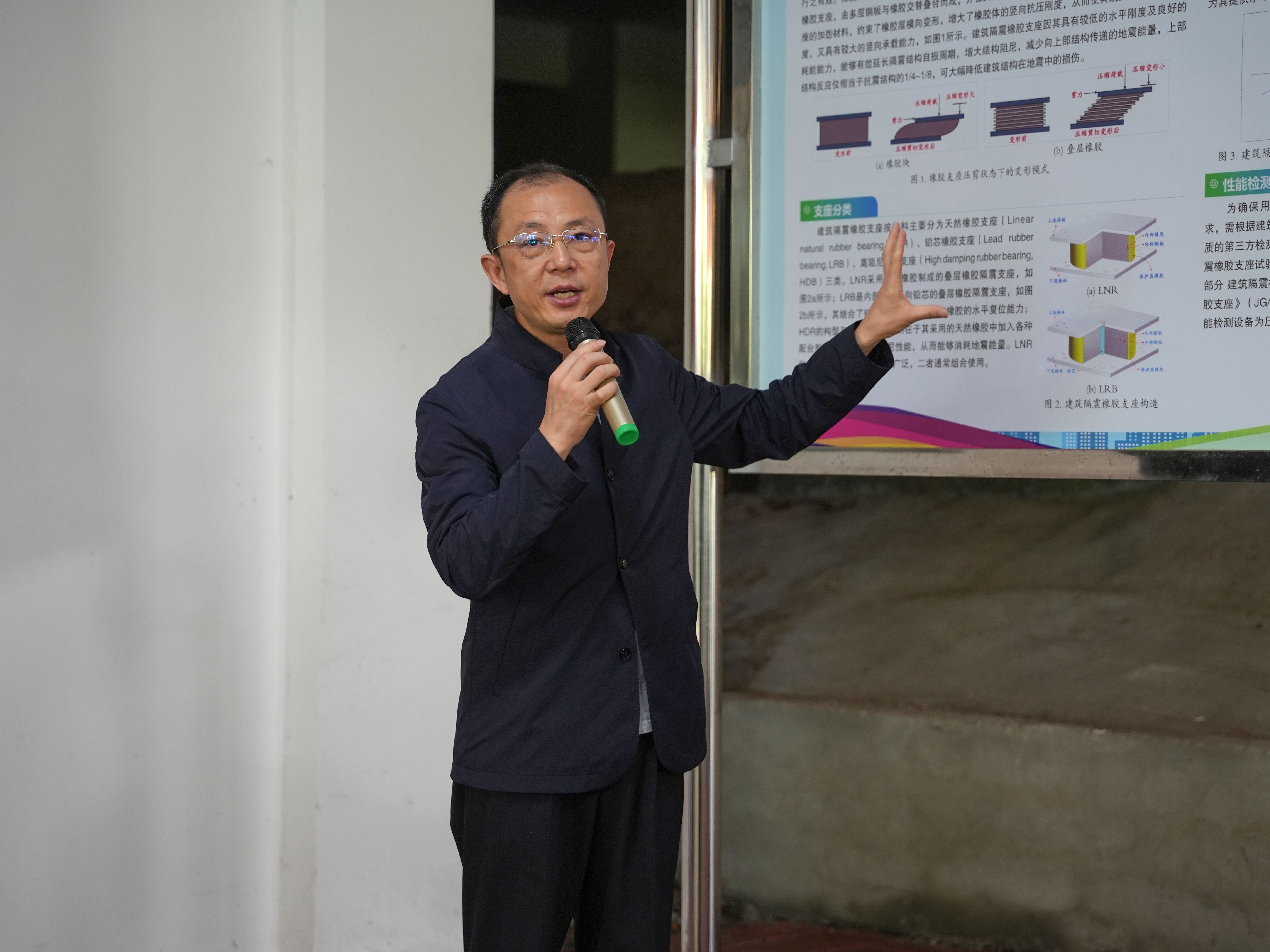 揭牌仪式由公司党委书记张涛主持。陆伟东副董事长致欢迎辞,并与路宏伟总工程师共同为“防震减灾科普基地”揭牌。王曙光教授详细讲解了立德楼的隔震设计。无锡圣丰建筑新材料有限公司董事长王惠强向公司捐赠隔震支座,表示希望双方加深校企合作。校社会科学处处长陈红喜致辞并介绍了公司科普工作进展情况。省地震局震害防御处副处长方毅表示,希望公司进一步为全省地震安全做出新的贡献。太阳集团tyc33455官网方海经理与太阳集团tyc33455官网实验小学副董事长王志辉共同为“童创少科院校外实践基地”揭牌。金雷部长对公司成立“防震减灾科普基地”表示热烈祝贺,并表示公司在推进全省科普工作发展中发挥了重大作用。