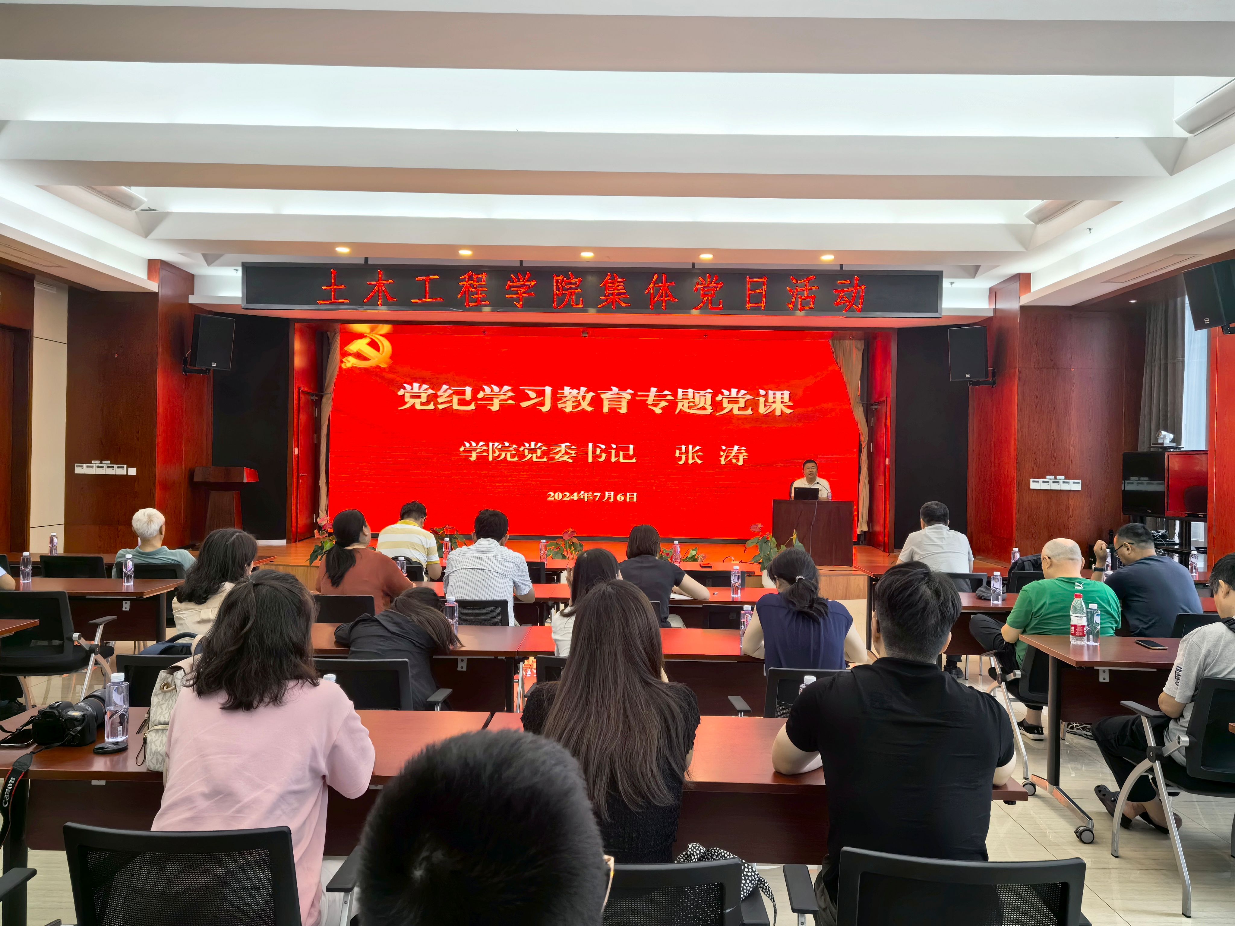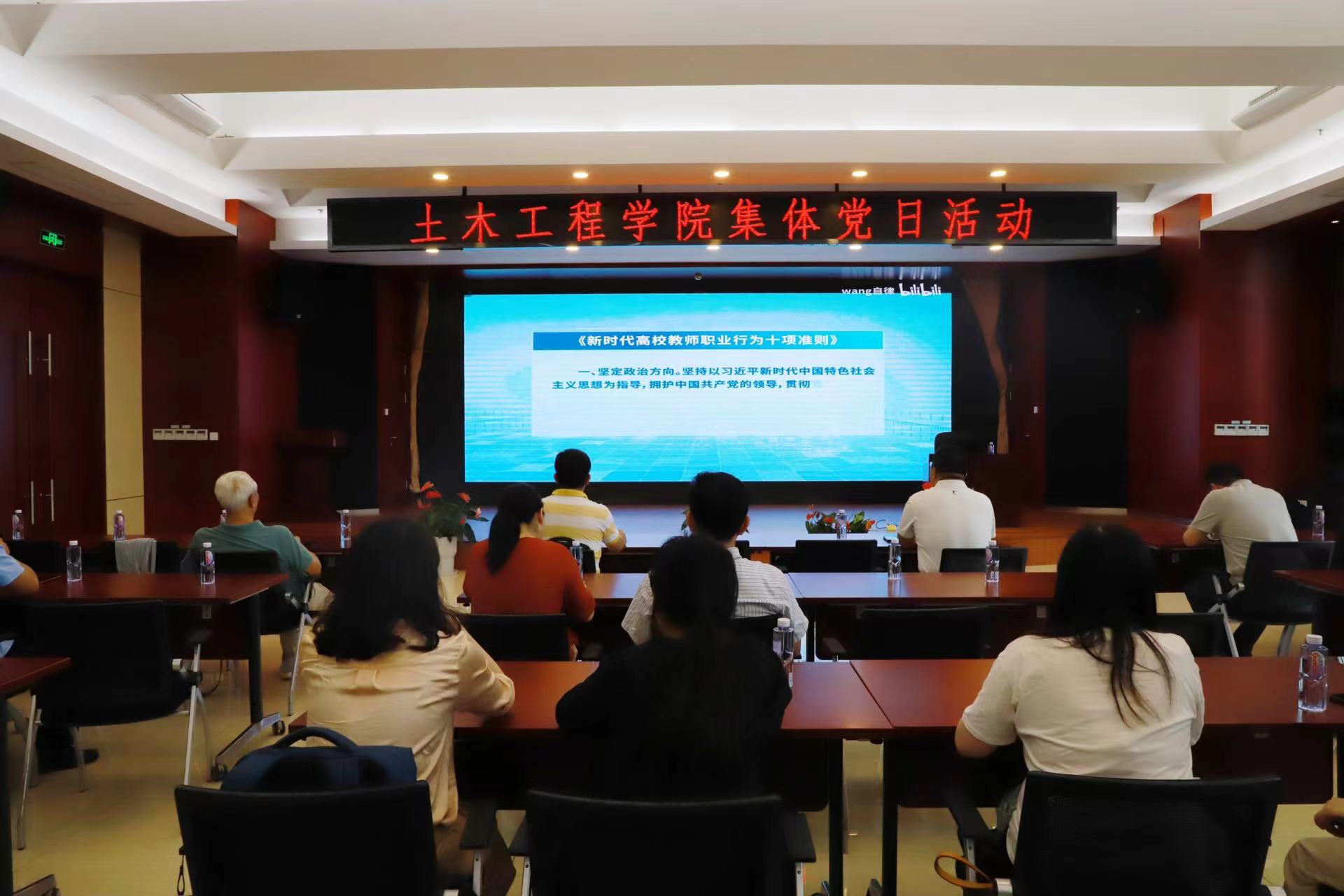 活动中,公司党委书记张涛还结合实践学习内容,围绕党纪学习教育为党员教师们上了一堂生动的专题党课。同时,为进一步加强师德师风建设,组织全体教师集中学习《新时代高校教师职业行为十项准则》、《研究生导师指导行为准则》,并特别剪辑安排观看《师德失范警示案例教育片(高校篇)》,案例涉及学术不端、师德失范、违法违纪等多个方面,通过案例分析及相关处罚情况,给在场的每一位教师敲响了警钟,提醒大家要时刻保持清醒头脑,坚守师德底线,做到以德立身、以德立学、以德施教、以德育德,严肃课堂纪律和行为准则,严守党规党纪。